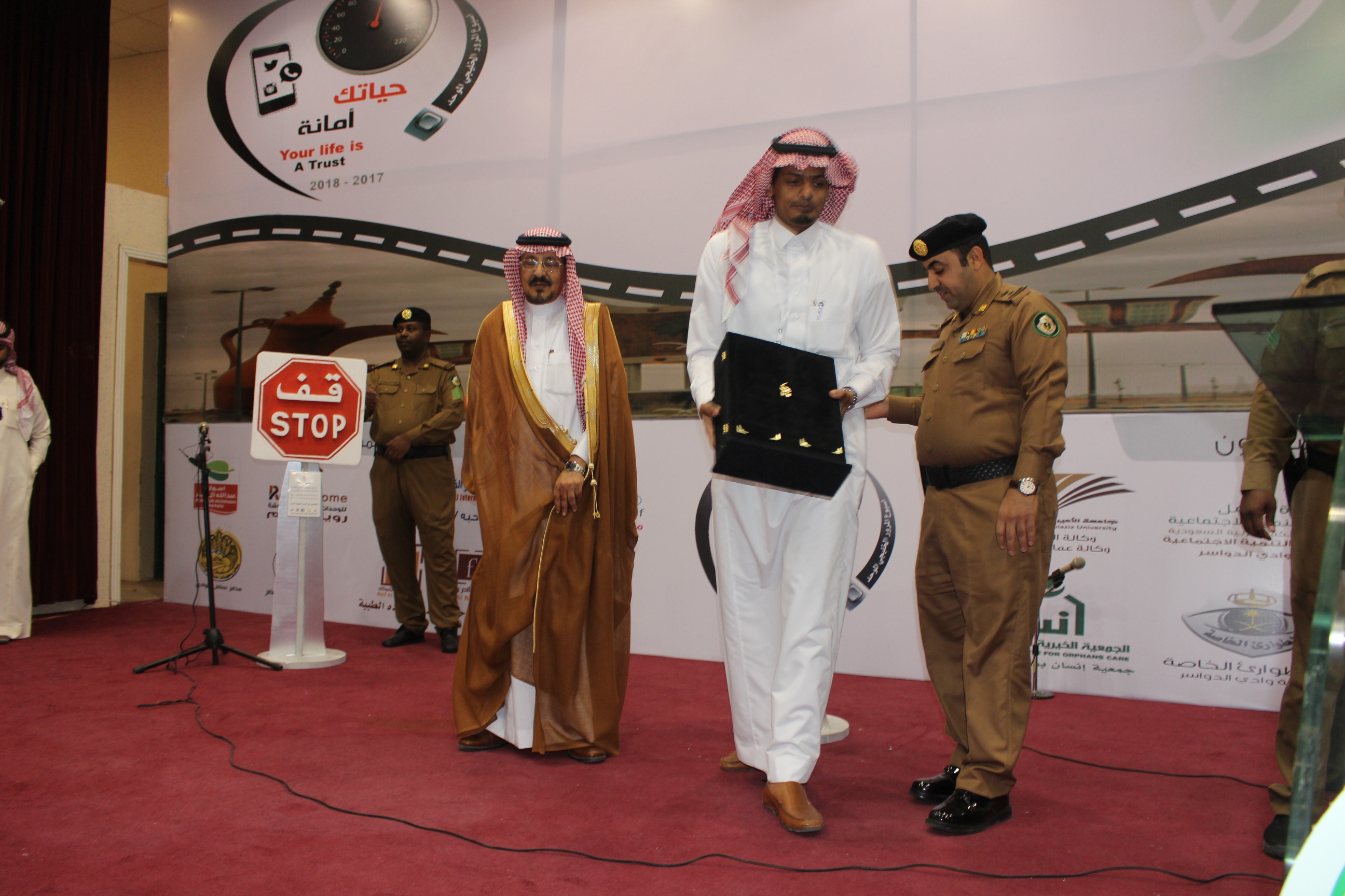 تسلم درع التكريم الدكتور مسفر بن سعود الهرش المشرف العام للأنشطة الطلابية بوكالة الفروع ، وعبر الهرش بأنه ومن خلال المبادرات والبرامج التي تعتمدها وكالة جامعة الأمير سطام بن عبدالعزيز للفروع جاءت المشاركة من أجل دعم المجتمع وتحقيق التنمية المستدامة ، مشيراً إلى أن اهتمام وكالة الجامعة للفروع بنشر ثقافة القيادة الوقائية والسلامة المرورية لمجتمع المحافظة ومن ضمنهم منسوبي الجامعة وموظفيها وطلابها الذين يشكلون شريحة ضخمة من التعداد السكاني بمحافظة وادي الدواسر .