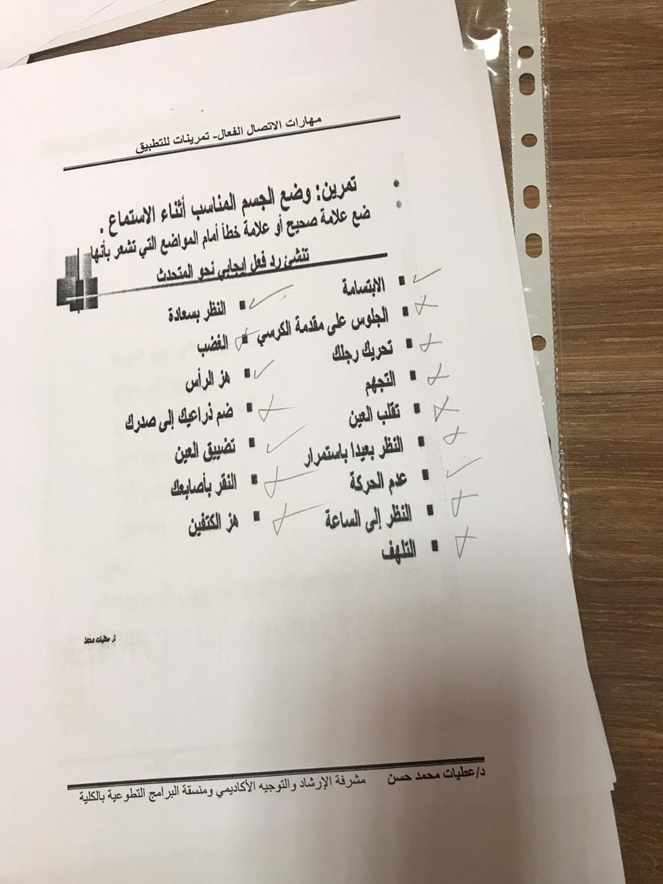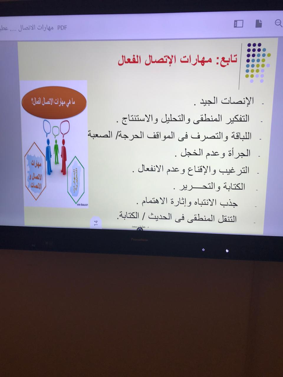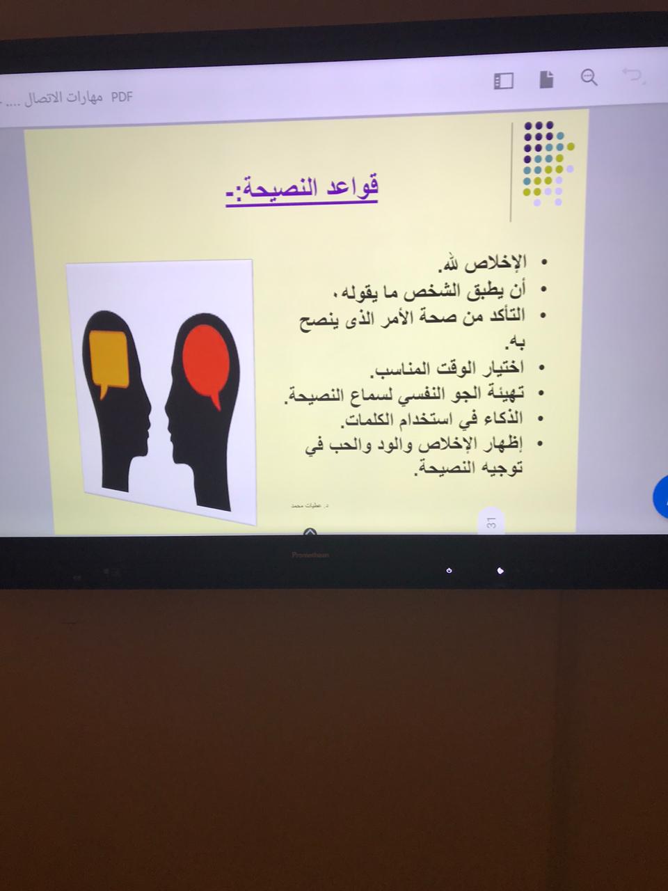بفضل الله و بكل الجد والاجتهاد نبدأ الفصل الدراسي الثاني في كلية العلوم الطبية التطبيقية بوادي الدواسر. حيث أقامت اليوم الأثنين الموافق ٢/٦/١٤٤ وحدة التوجيه والإرشاد الطلابي بالتعاون مع وحدة العمل الطلابي ممثلة في البرامج التطوعية بالكلية دورة تدريبية للطالبات تحت عنوان "مهارات الاتصال الفعال و فن التعامل مع الآخرين" و ذلك في تمام الساعة ١٢ ظ بقاعة دراسية C10 قدمتها دكتورة عطيات محمد حسن مشرفة وحدة الارشاد والتوجيه الطلابي ومنسق البرامج التطوعية بالكلية. وقد شرفت الدورة بحضور سعادة الدكتورة/ ماجدة الجميل مساعدة العميد لشؤون الطالبات، سعادة الدكتورة/هيام أحمد مشرفة وحدة العمل الطلابي، سعادة الدكتورة/ مجيدة عبد العاصي مشرفة وحدة الخريجين بالكلية والطالبات بالكلية. وقد هدفت الدورة إلى إكساب الطالبات مهارات الاتصال الفعال وفن التعامل مع الآخرين. ذلك بالإضافة إلى معرفة مفهوم الاتصال الفعال، معوقاته، مهارات الاتصال والتواصل الفعال، قواعد يجب مراعتها عند التعامل مع الناس، طرق إعطاء النصيحة، عمل تمرينات للتطبيق العملي للدورة. وقد لاقت الدورة اهتمام وترحيب من الحضور.
