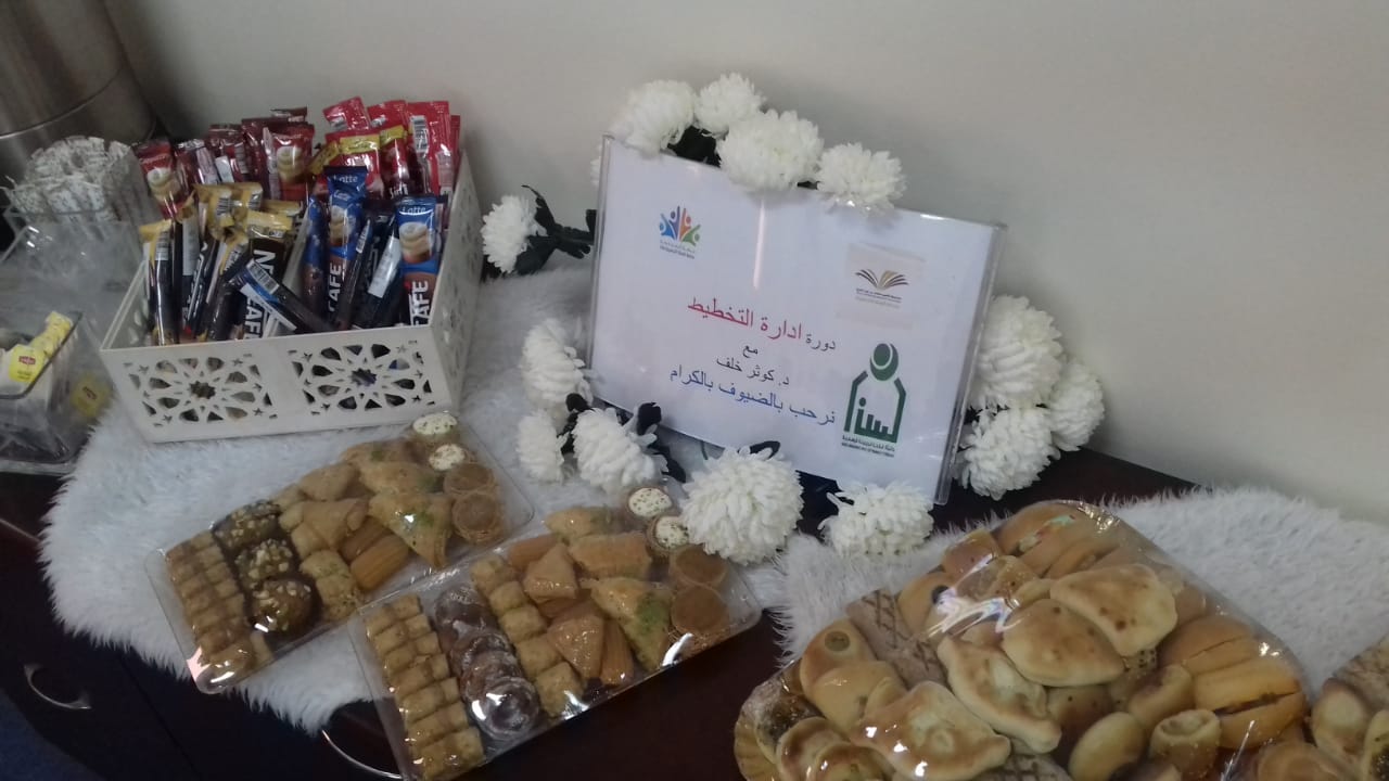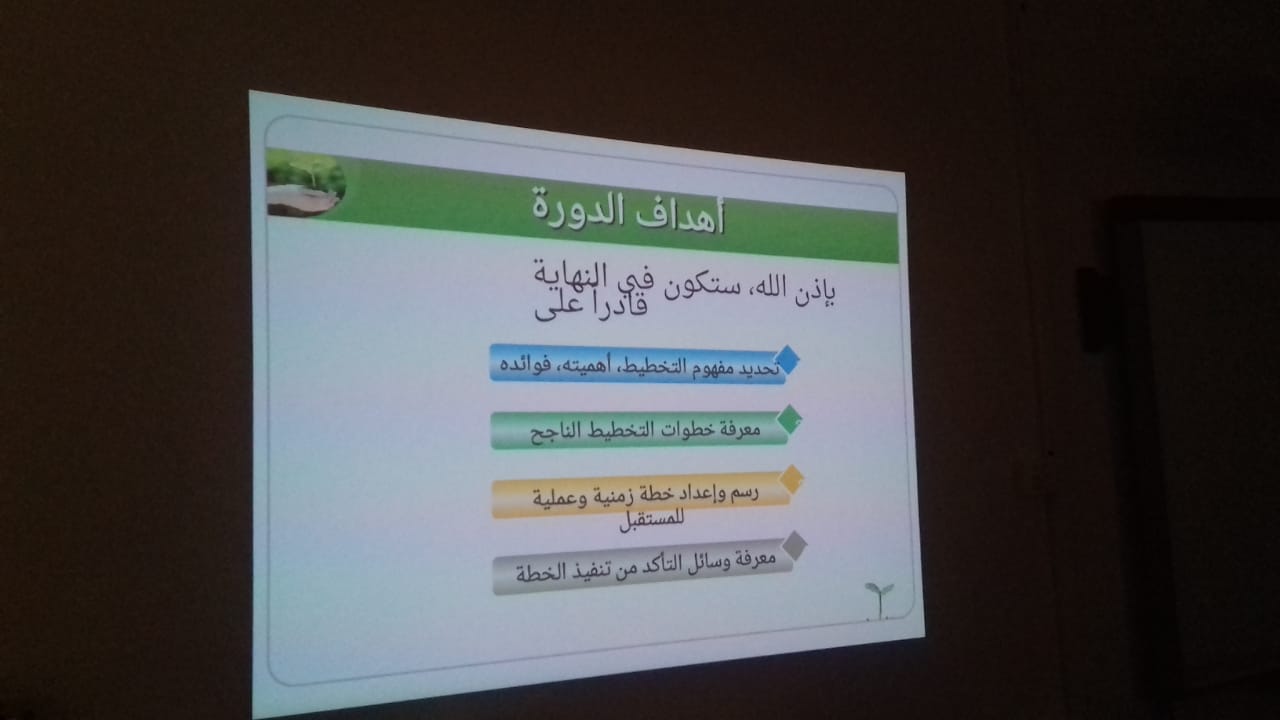 تطبيقاً لأهداف وحدة خدمة المجتمع وتعزيزاً لدور عمادة السنة التحضيرية قسم الطالبات بتقديم خدمات أكاديمية لفئاته تم تنظيم دورة تدريبية تحت إشراف الأستاذة علا قرعان لطالبات وموظفات جمعية إنسان لرعاية وخدمة الأيتام بعنوان مهارة التخطيط الشخصي وذلك يوم الأحد الموافق 1440/2/26هـ من تقديم الدكتورة كوثر خلف والتي عرضت أهم أهداف الدورة من تعريف مفهوم التخطيط وبيان أهميته في حياة الفرد الشخصية والعملية وأوردت بعض الأمثلة كنتائج لدراسات عالمية تبين مدى فعالية التخطيط بحياة الفرد. وتطرقت المدربة لايضاح أهم خطوات التخطيط الواجب اتباعها وكيفية تطبيقها والواجب المحافظة عليها وتمت الإجابة بنهاية الدورة على أسئلة واستفسارات الحضور ومناقشة أهم الوصايا التي استخلصت من الدورة.