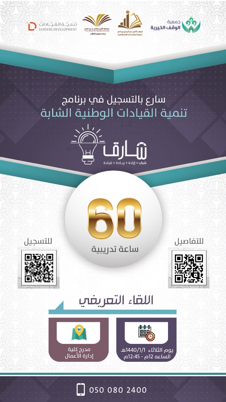 من جانبه أكدّ الدكتور مبارك الحربي عميد معهد البرامج والخدمات الاستشاريّة أن هناك مسؤولية كبيرة تقع على عاتق المؤسسات التعليمية والجمعيات الخيرية ومراكز التدريب لخلق كوادر شابة مؤهلة قادرة على الريادة والإبداع وتملك الخبرة الكافية للقيادة السليمة، مشيرًا إلى أهمية حرص الطلاب على التسجيل في البرنامج والاستفادة من مكوناته ومحتواه التأهيلي من خلال الرابط التالي: