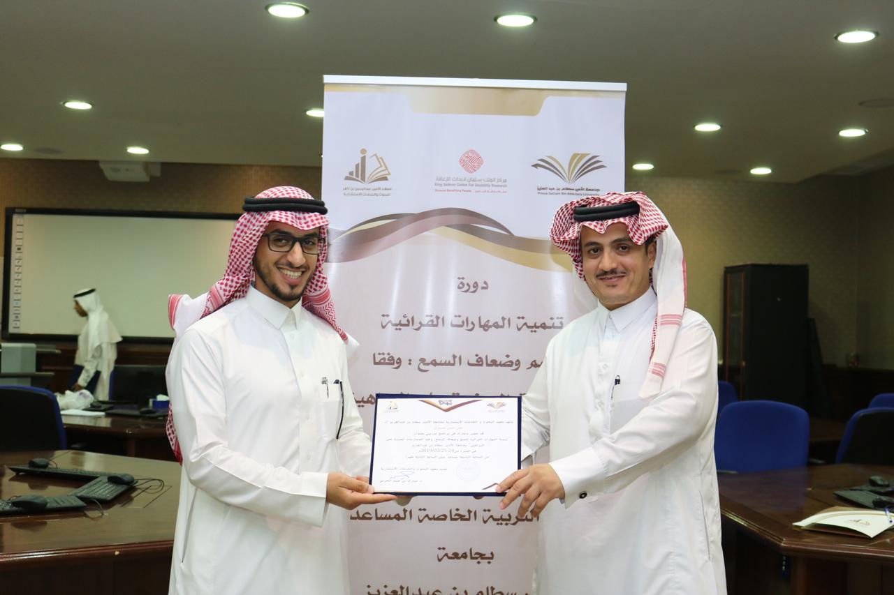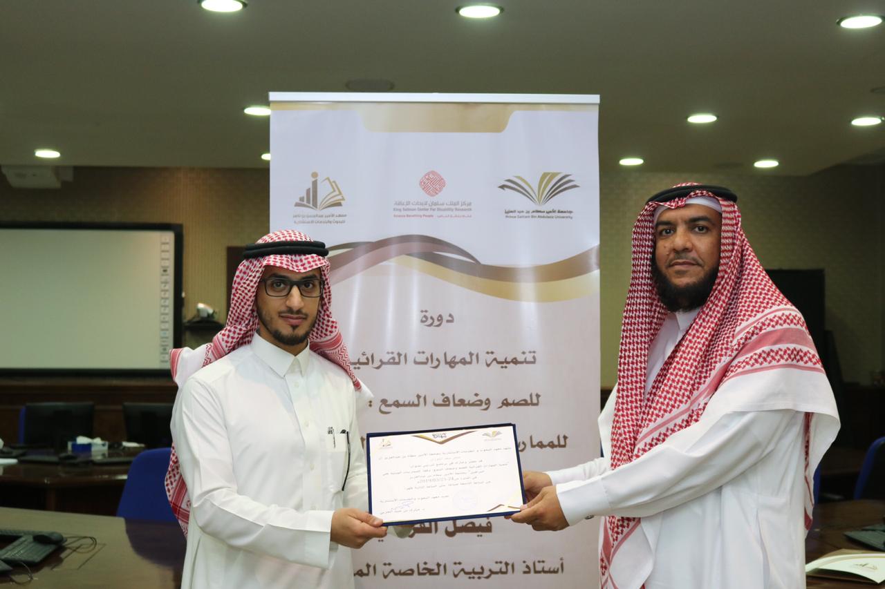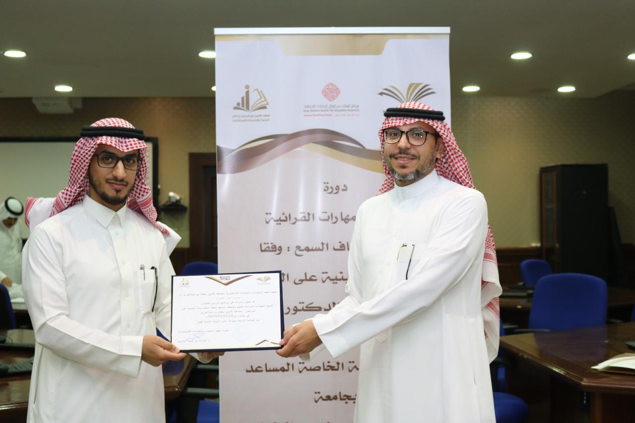 اختتم معهد البحوث والخدمات الاستشاريّة بالتعاون مع مركز الملك سلمان لأبحاث الإعاقة ورشة عمل بعنوان (تنمية المهارات القرائية للصمّ وضعاف السمع: وفقًا للممارسات المبنية على البراهين) والتي قدمها الدكتور فيصل بن محمد القريني أستاذ التربية الخاصّة المساعد بالجامعة، ووكيل المعهد للبرامج والبحوث والدراسات، وهدفت الورشة إلى بيان المعدل الطبيعي للحصيلة اللغوية (للسامعين)، ومعرفة أسباب الضعف القرائي للصمّ وضعاف السمع، وأبرز المشكلات القرائية عند دخول المدرسة للأطفال الصمّ وضعاف السمع، وطرق واستراتيجيات تنمية المهارات القرائية الأكثر فعالية وفقًا لتوصيات المجلس الوطني الأمريكي للقراءة: