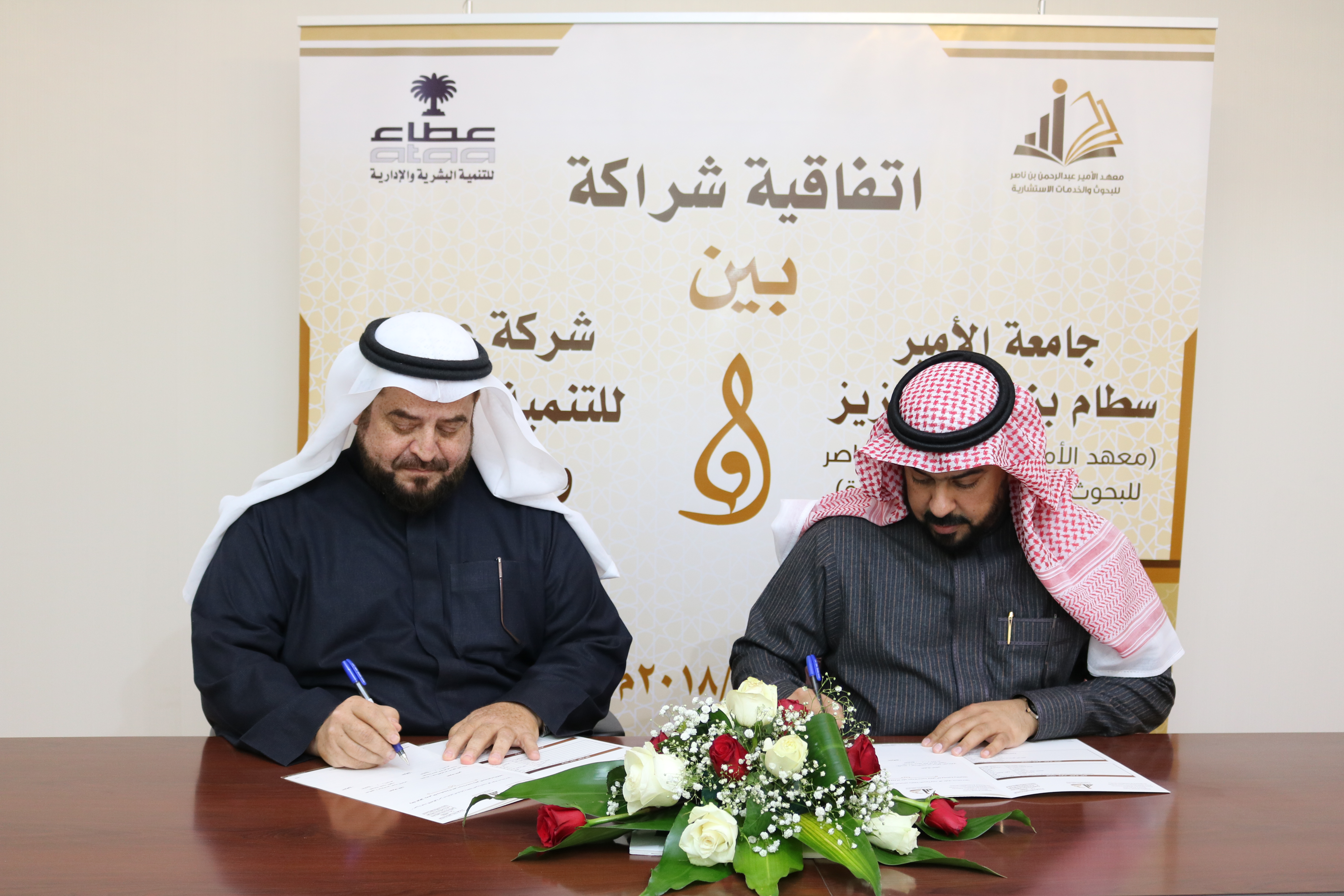 وقع معهد الأمير عبدالرحمن بن ناصر للبحوث والخدمات الاستشارية مع شركة عطاء للتنمية البشرية والإدارية اتفاقية تعاون وشراكة استراتيجية بمقر المعهد بالمدينة الجامعية صباح الثلاثاء الموافق 6 / 5 / 1439 ه – 23 / 1 / 2018 م , وقد مثل المعهد بالتوقيع الدكتور / مبارك بن عبيد الحربي عميد معهد البحوث , ومثل الشركة الأستاذ / عبدالعزيز بن صالح القرعاوي مدير عام شركة عطاء , وتهدف هذه الاتفاقية إلى التعاون في تنفيذ البرامج و الملتقيات المتخصصة حيث أن شركة عطاء لها نشاط متميز في تنظيم اللقاءات والمؤتمرات .