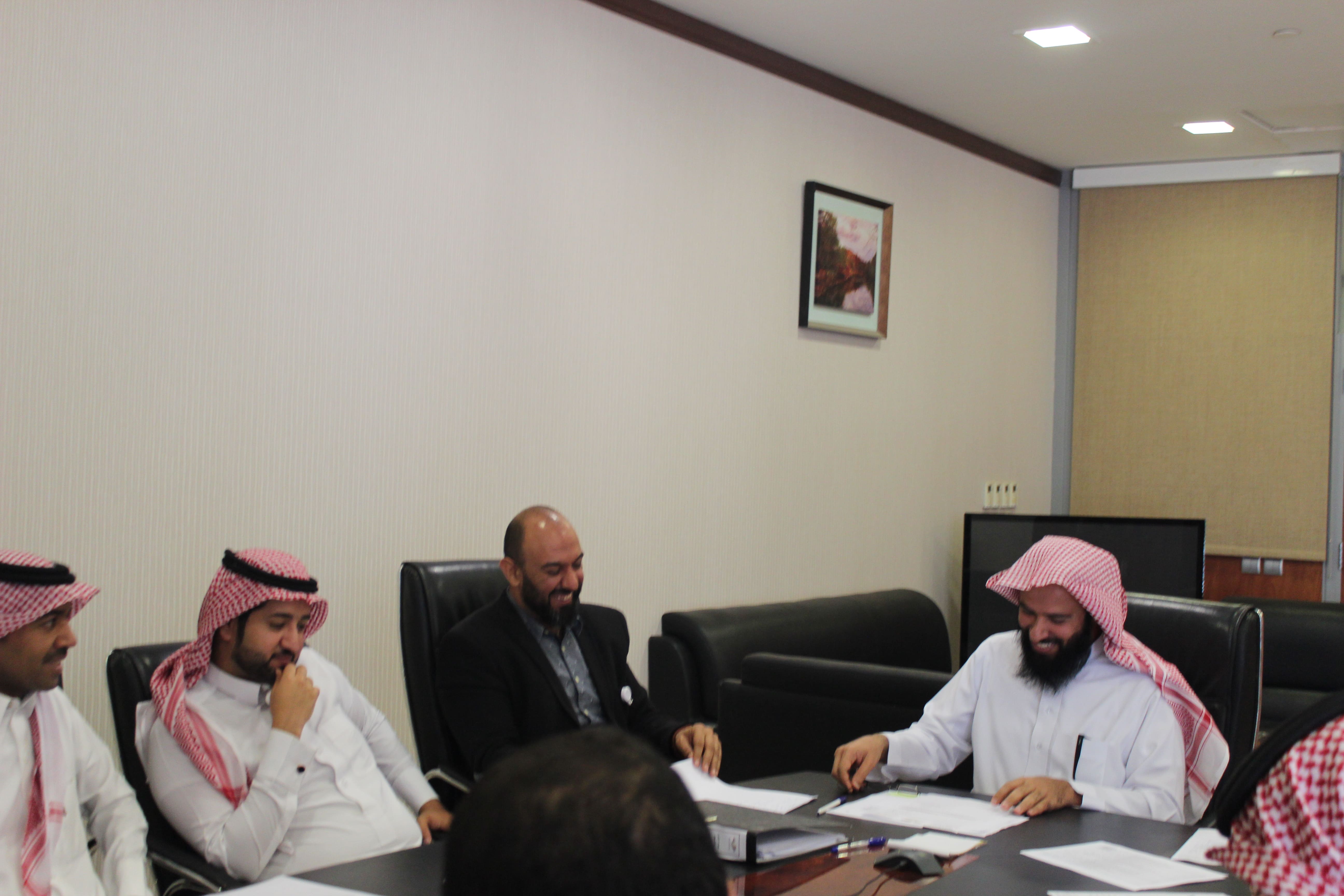حيث رحب الدكتور عبدالعزيز الصقر في بداية الاجتماع بالدكتور هشام عبدالعزيز العبدالجبار بمناسبة صدور تكليفه الجديد وكيلا للعمادة للشؤون الفنية، متمنيا له التوفيق والسداد.
