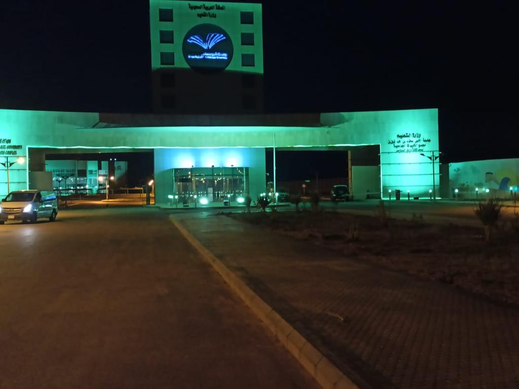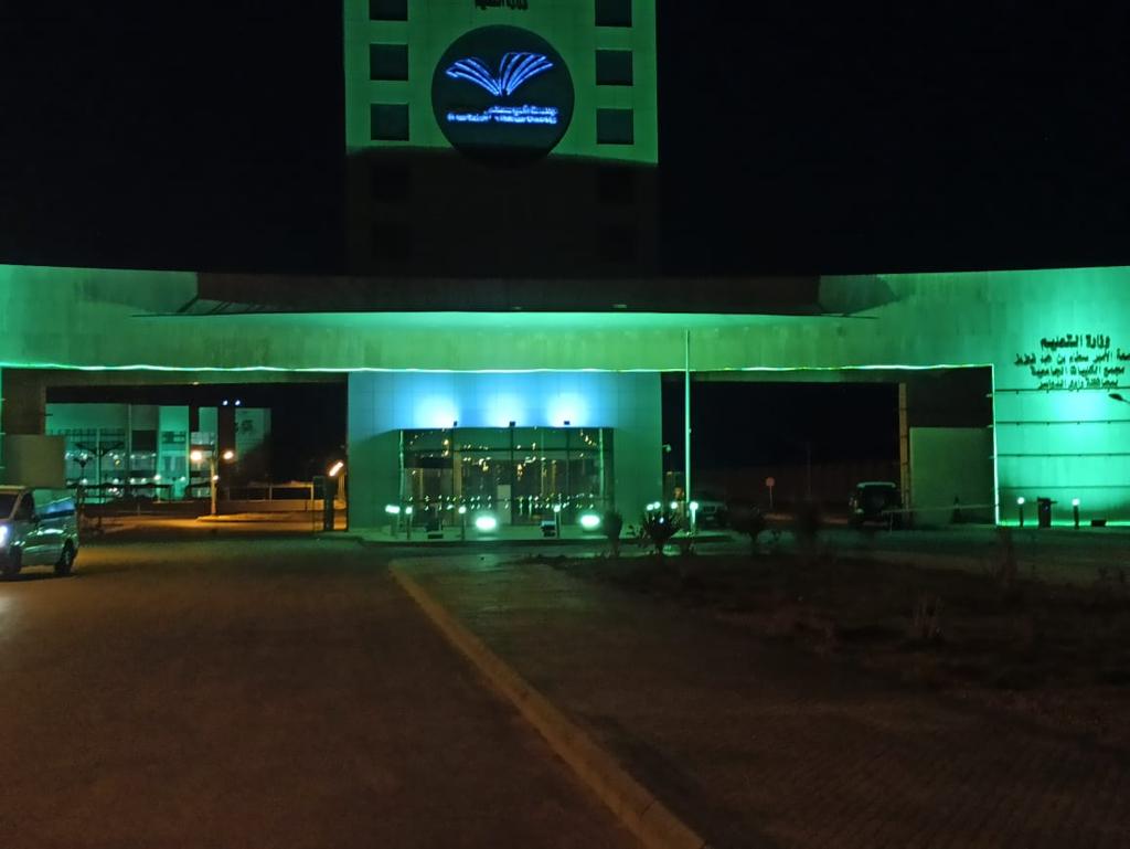 كما أبرزت الألوان الخضراء التي زينت مبنى مجمع كليات وادي الدواسر الاحتفاء بيوم الوطن 91 ، عن الحب الكبير والانتماء اللا محدود لهذا الوطن الغالي.