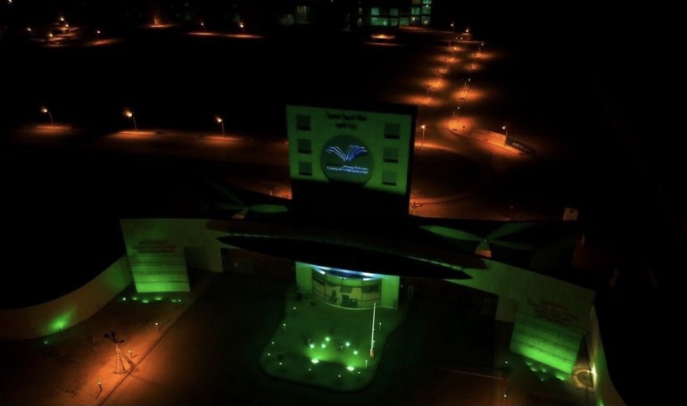 توشح مجمع كليات محافظة وادي الدواسر بالأخضر للاحتفال بمناسبة ذكرى اليوم الوطني للمملكة 91 تحت شعار "هي لنا دار ".. حيث اكتسى المجمع باللون الأخضر في منظر زاد من بهاء وجمال المبنى التي تقع على الواجهة الشرقية لمحافظة وادي الدواسر بمدينة والذي يعد معلما حضاريا بارزًا .