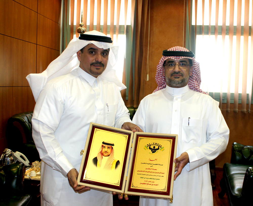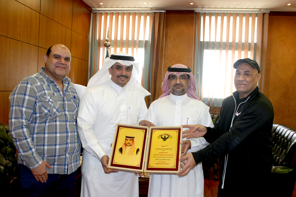استقبل وكيل الجامعة للشؤون التعليمية والأكاديمية الدكتور عبدالرحمن بن ابراهيم الخضيري صباح الخميس 2/3/1438هـ رئيس مجلس إدارة مجموعة الطفيل الرياضية الأستاذ أحمد بن صالح الطفيل والمدير العام للمجموعة الكابتن راشد حسانين.