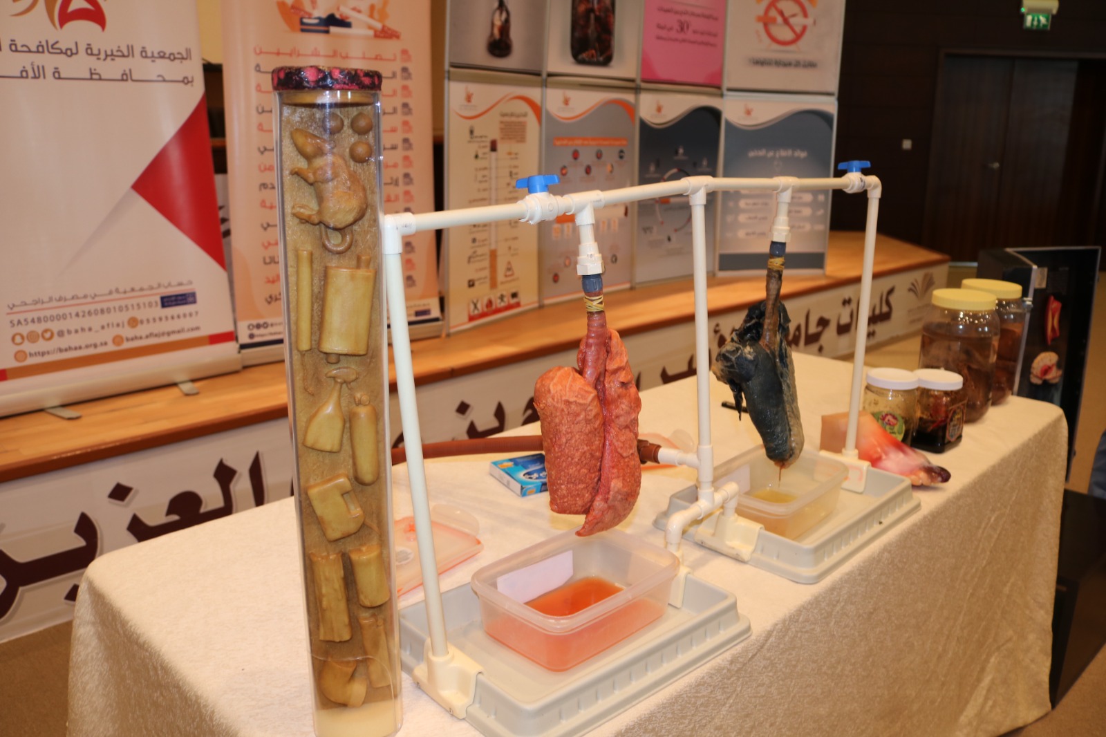 و تناولت المحاضرة أيضاً الجوانب السلبية للتدخين، والأمراض التي يمكن أن يصاب بها الشخص المدخن بشكل أكبر من الشخص الغير مدخن.