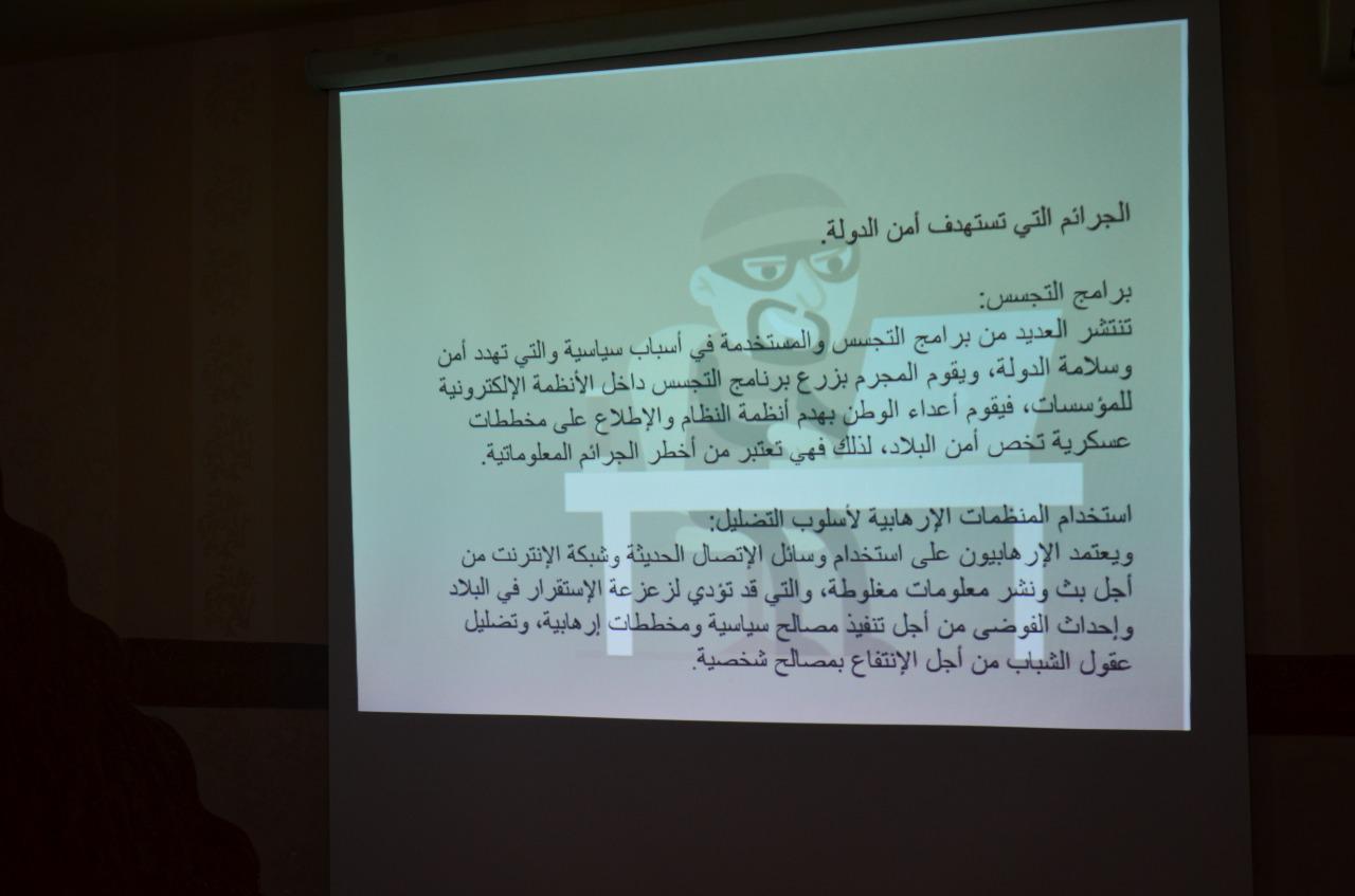 قامت وحدة العمل الطلابي ممثلة بالمجالس الطلابية قسم علوم الحاسب بكليات الأفلاج (قسم الطالبات) يوم الأربعاء 1441/3/23هـ الساعة التاسعة والنصف صباحاً في القاعة الرياضية بتنظيم برنامج بعنوان (مخاطر التكنولوجيا)، ويهدف البرنامج إلى نشر الوعي بمخاطر الجرائم الإلكترونية، وكيفية اتخاذ التدابير الوقائية للحماية منها، وعرض بعض الأمثلة على الجرائم الإلكترونية كالقرصنة والغش وعمليات الاحتيال والاختلاس والتخريب وسرقة المعلومات والتزوير، و تعريف الطالبات بمخاطر بعض مواقع التواصل الاجتماعي وطُرق التعامل معها، وكيفية حماية أنفسهن من الجرائم الإلكترونية في جميع المجالات والتحذير من التساهل أو الإهمال أثناء التعامل معها، والتأكيد على دورهن في توعية وتثقيف المجتمع.