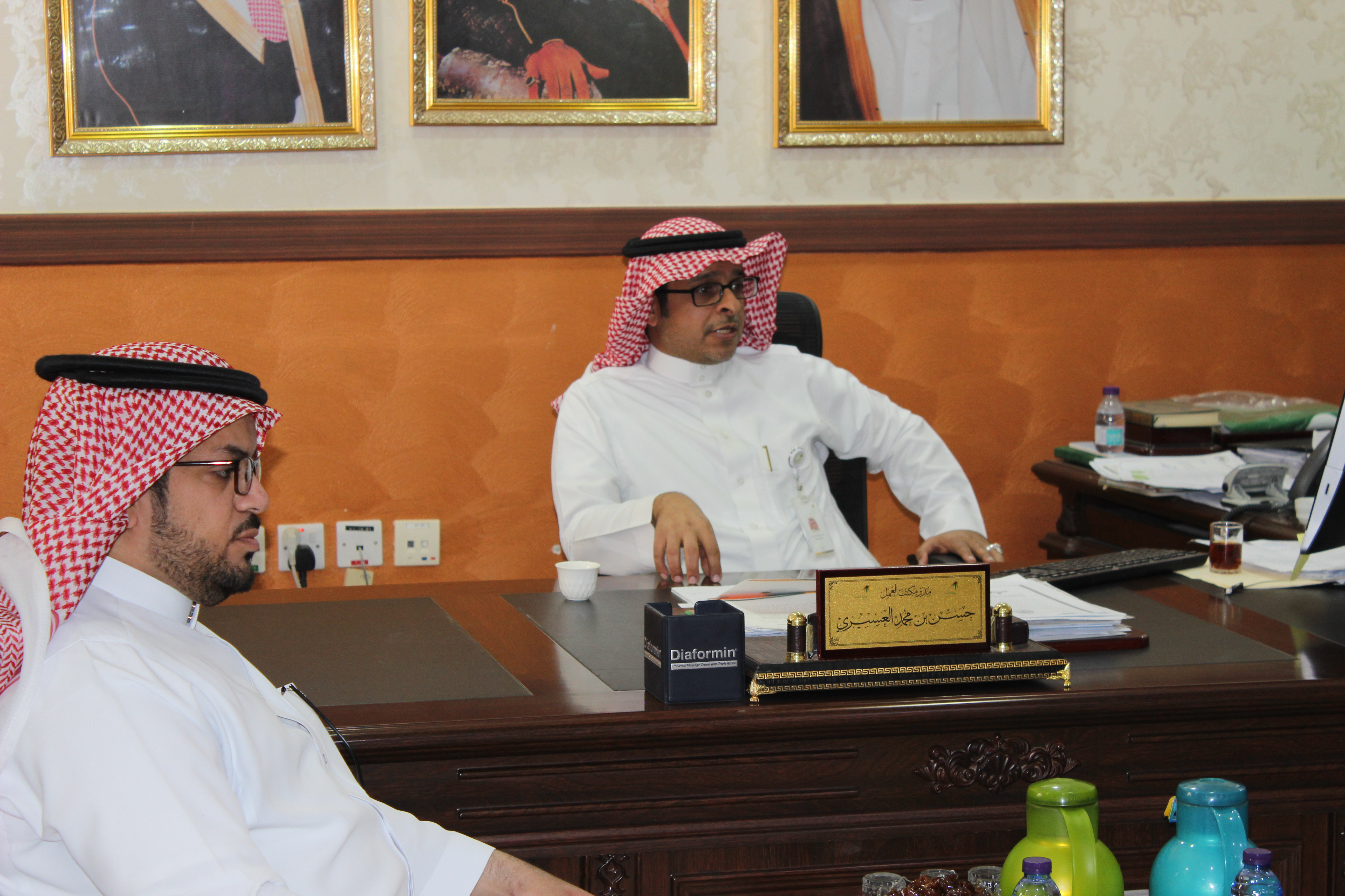 وكان في استقبال طلاب الكلية سعادة أ. حسن محمد العسيري مدير مكتب العمل بالخرجوقد قدم توضيح لأهم الخدمات التي يقدمها مكتب العمل للمواطنين من أهمها فتح ملف منشأة، وإصدار، وتجديد رخص العمل، وإصدار شهادة السعودة، والتسوية للخلافات العمالية، وتقييم المنشأة في نطاقات، ونقل خدمات التابعين إلى منشأة.كما أكد العسيري على أهمية نشر الثقافية العمالية بين فئات المجتمع للتعرف على الحقوق والواجبات في نظام العمل السعودي .ومن أهم الحقوق التي يكفلها نظام العمل هي عدم تكليف العامل بعمل يختلف اختلافًا جوهريًا عما هو متفق عليه في العقد إلا بموافقته الكتابية، ويتحمل صاحب العمل تكاليف انتقال وإقامة العامل خلال مدة العقد، وقبل فسخ أى عقد بدون مكافأة فأنه يجب أن تتاح للعامل الفرصة لكي يبدي أسباب معارضته للفسخ . كما أشار إلى أن من أهم واجبات الموظف هي أداء وإتقان العمل، واحترام القوانين واللوائح، والمحافظة على أوقات العمل،والمحافظة على الممتلكات العامة، وعدم إفشاء اسرار الوظيفة.