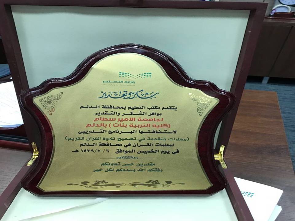 و قد شكرت مديرة مكتب التعليم بالدلم المدرّب على البرنامج الثري و لكل من ساهم في إنجاح هذا البرنامج,