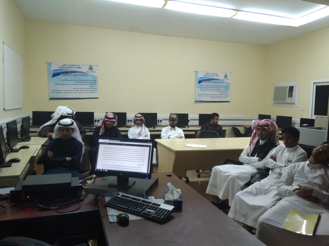 انطلاقًا من اهتمام كلية المجتمع بالخرج بربط الدراسة النظرية بالبيئة العملية لتأهيل الطلاب بشكل جيد للالتحاق بسوق العمل، قام منسق مشاريع التخرج الأستاذ/ ذيب أبوسالم بتنظيم محاضرة بعنوان" القواعد التنظيمية لمشاريع التخرج" لطلاب قسم الحاسب الآلي وقد قدمها الأستاذ/ جهاد أحمد غانم المحاضر بقسم الحاسب الآلي.