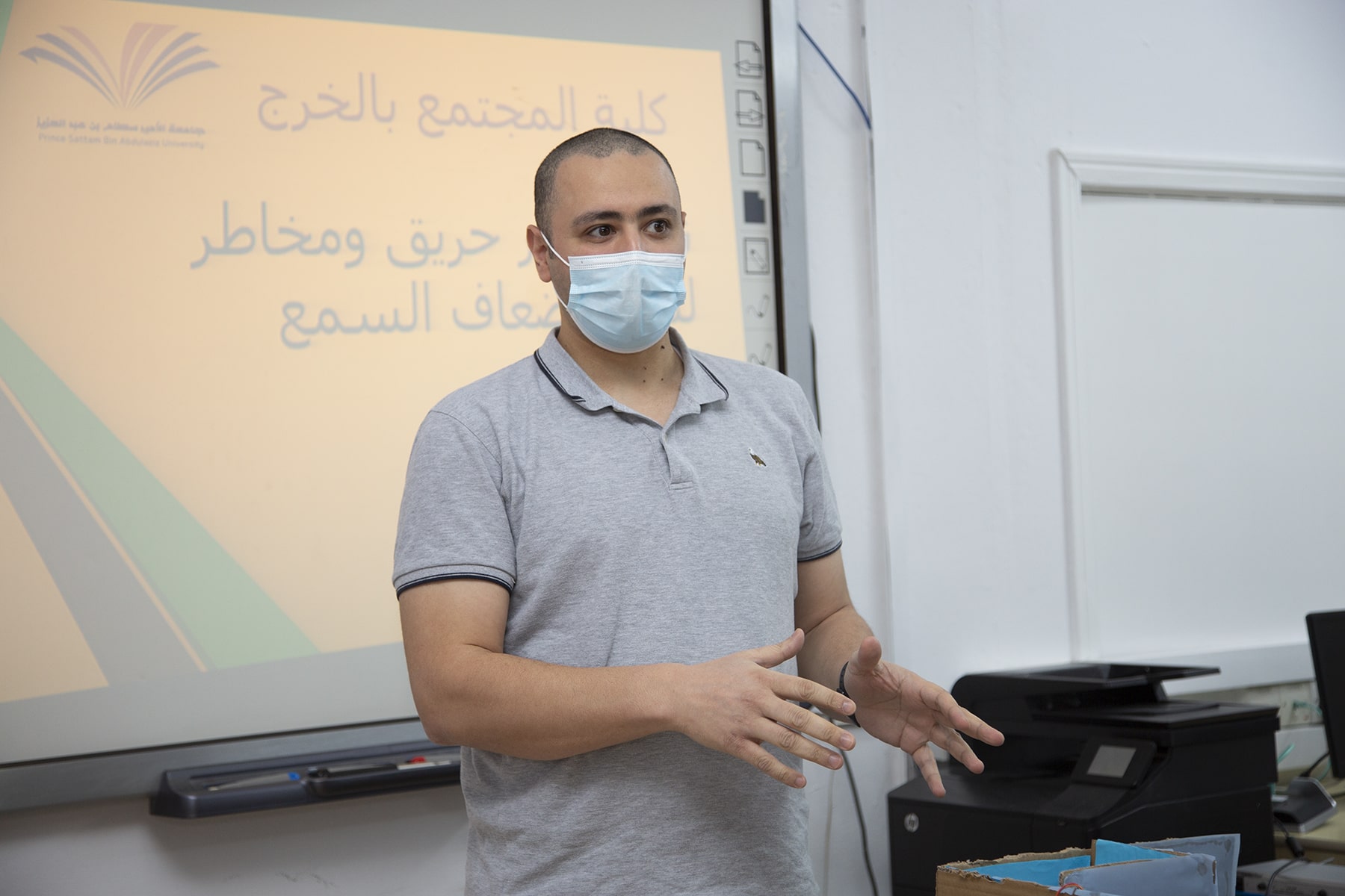 برعاية وكيل عمادة خدمة المجتمع والتعليم المستمر الدكتور ياسر الحمادي ، تم مساء أمس الأربعاء ٢٥/٨/١٤٤٢ هـ الموافق ٧/٣/٢٠٢١ مناقشة مشاريع تخرج طلاب دبلوم تطبيقات الحاسب الآلي لذوي الإعاقة السمعية ( الصم ) .