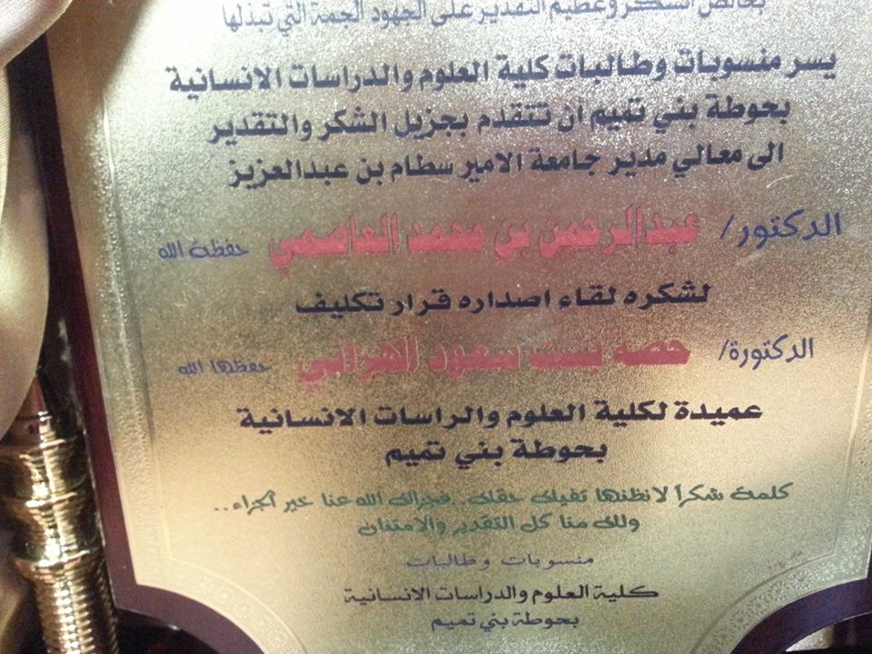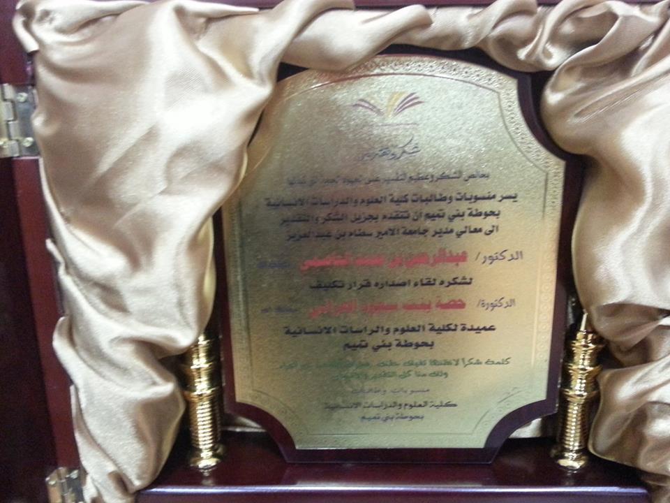 احتفت كلية العلوم والدراسات الإنسانية بحوطة بني تميم من خلال برنامج نظمته وحدة الأنشطة الطلابية بمناسبة تكليف الدكتورة حصة بنت سعود الهزاني عميدة للكلية ، بدأ الحفل بآيات من الذكر الحكيم والقت منسقة وحدة العمل الطلابي أ.لمياء ال سالم كلمة بدأتها بالترحيب بالعميدة و بالضيوف ومنسوبات الكلية ، تلا ذلك فيديو يوضح فيه مسيرة العميدة منذ أن كانت معيدة بالكلية إلى أن توجت عميدة لها، ثم قدمت مساعدة العميدة للتطوير والجودة د .نحمده جلال فوزي كلمتها، وقدمت التهنئة للدكتورة حصة، وتحدثت د. بثينة رئيسة قسم الدراسات الإسلامية نيابة عن رئيسات الأقسام والعضوات متمنية للجميع أن يكونوا يدا واحدة ،وجاءت تهنئة الأستاذة فوزية جمعة نيابة عن إداريات الكلية ،وفي الخاتمة قدمت عميدة الكلية كلمتها بدأتها بكلمة شكر رفعت فيها أسمى آيات الشكر والتقدير لمعالي مدير الجامعة الدكتور عبد الرحمن بن محمد العاصمي ، و وكيل الشؤون التعليمية والأكاديمية الدكتورعبد الرحمن الخضيري على هذه الثقة ووعدت ببذل قصارى جهدها من أجل تقديم أفضل الخدمات والإنجازات، مشيرة إلى أن أي نجاح ما هو إلا بتعاون الجميع في سبيل الرقي بالكلية والجامعة ،وفي الختام قامت مساعدة العميدة للتطوير والجودة بتسليم العميدة درعا من منسوبات الكلية وباقة من الزهور تقديرًا وحبًا لها، ودرع شكر وتقدير لمعالي مدير الجامعة بمناسبة إصدار هذا القرار سائلين الله عز وجل التوفيق والسداد ومتمنين لها مزيداً من العطاء .