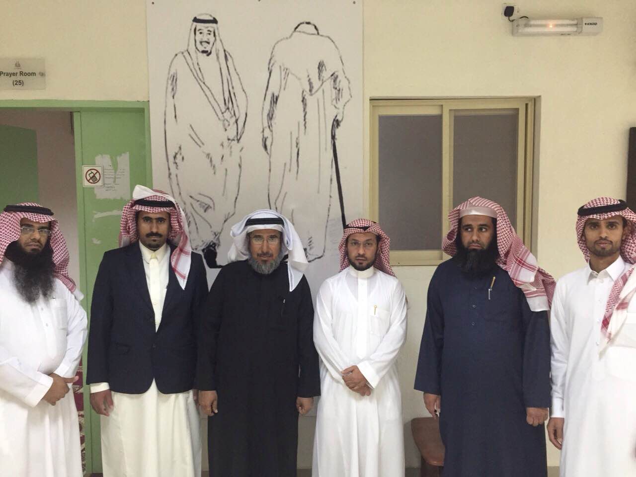 هذا وقد قام عميد الكلية د. خالد العتيبي بتسجيل أول كلمة في هذه اللوحة الفنية التي ضمت (رسمًا) لصورتَيْ الملك الراحل عبدالله بن عبدالعزيز -رحمه الله-، والملك سلمان بن عبدالعزيز -حفظه الله-، كتب الدكتور العتيبي فيها: (إلى جنات الخلد أيها الملك القائد ... أسأل الله أن يجعل ما قدمت في ميزان حسناتك. ونبايع الملك سلمان على السمع والطاعة في المنشط والمكره، ونسأل الله له التوفيق والسداد).