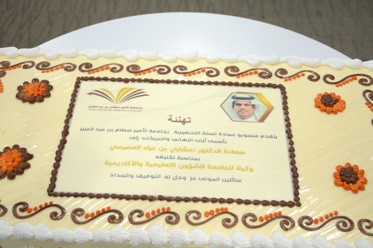 بأجواء سادها الفرح والسرور ، وازدانت بأجمل عبارات التهاني والتبريكات ، وتعطرت بأنفاس الأحبة والزملاء،أقامت عمادة السنة التحضيرية احتفالية بمناسبة صدور قرار معالي وزير التعليم بتكليف سعادة الدكتور/ مشاري بن عياد العصيمي - عميد عمادة السنة التحضيرية السابق - وكيلاً لجامعة الأمير سطام بن عبدالعزيز للشؤون التعليمية والأكاديمية لمدة ثلاثة سنوات وذلك اليوم الأحد الموافق 13/10/1440هـ ، وبحضور منسوبي العمادة وضيوف أعزاء من عمادة شؤون الطلاب في قاعة التشريفات.