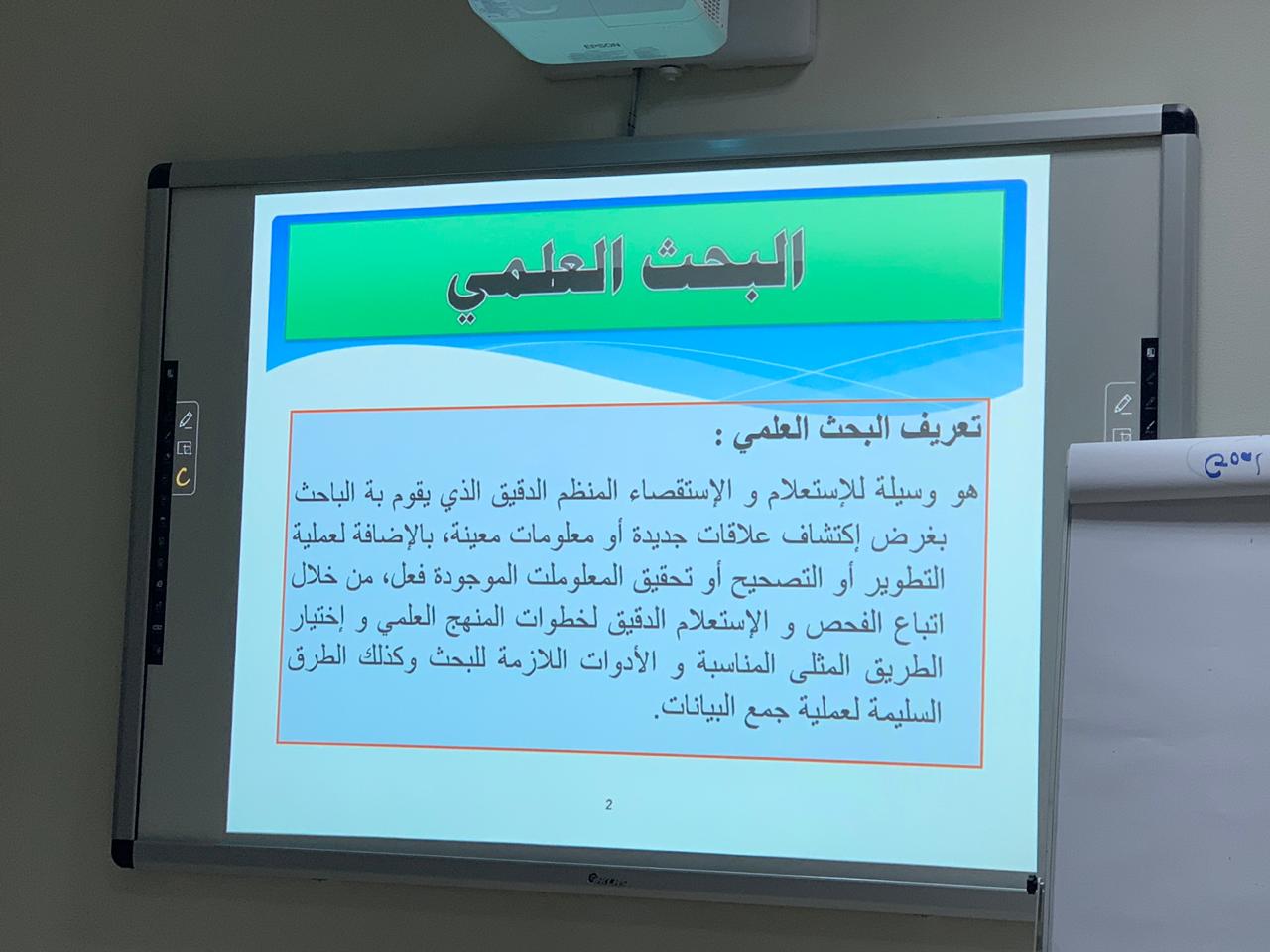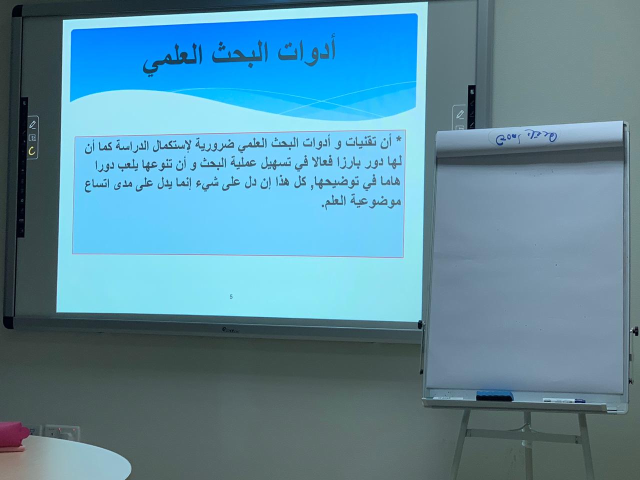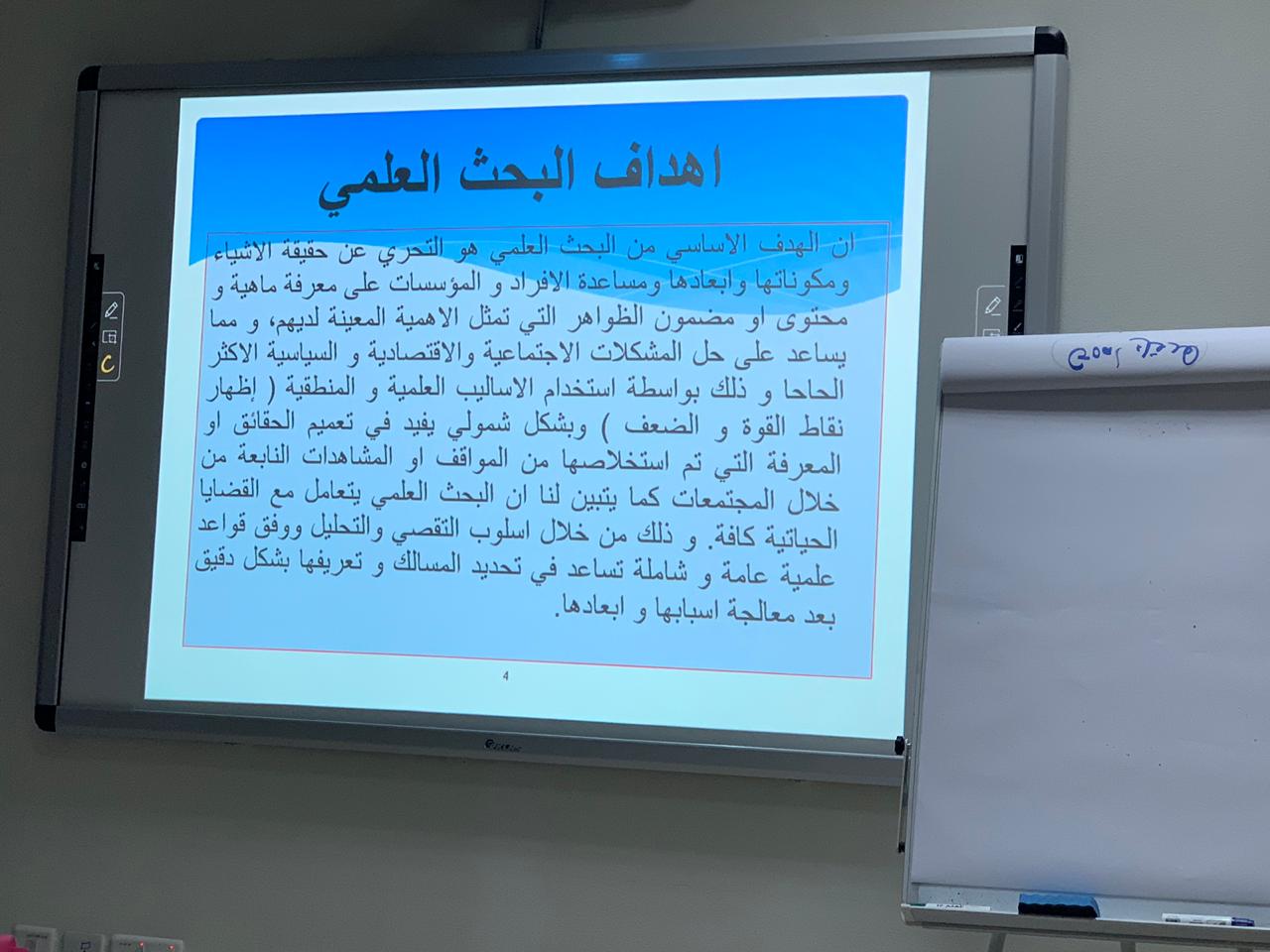 وتم التعرف في الدورة على التعريف بمفهوم البحث العلمي واختيار الطرق المثلى المناسبة والأدوات اللازمة للبحث كذلك الطرق السليمة لعملية جمع البيانات وكذلك أهمية البحث العلمي وأهدافه وأن الهدف الأساسي من البحث العلمي هو التحري عن حقيقة الأشياء ومكوناتها وأبعادها ومساعدة الأفراد والمؤسسات على معرفة ماهية محتوى أو مضمون الظواهر التي تمثل الأهمية المعنية لديهم ومن ثم أدوات البحث العلمي وأساليب جمع البيانات وأنواع البحث العلمي وخطوات البحث العلمي للمرحلة الجماعية ومراجع يمكن أن يرجع لها الباحث.