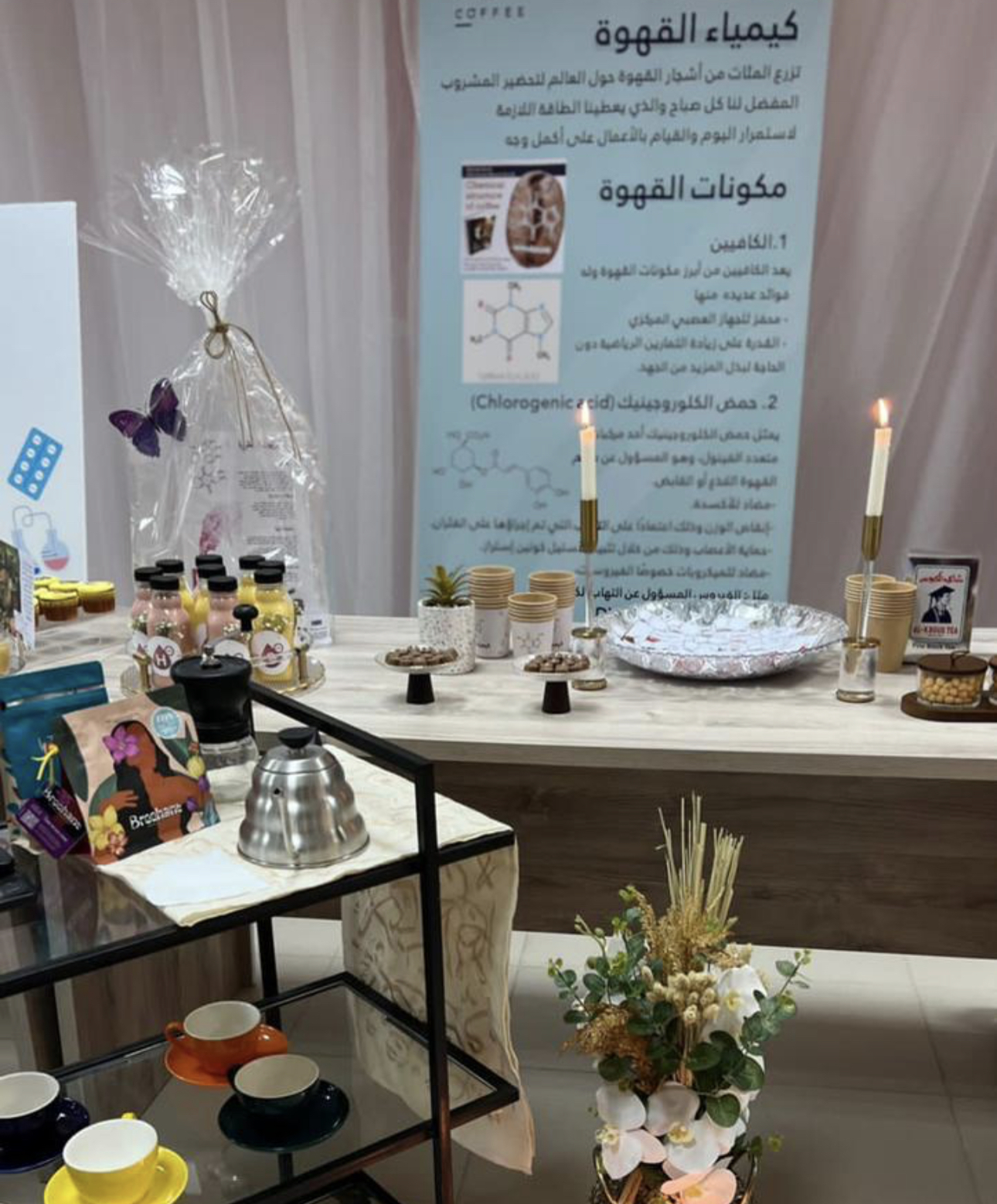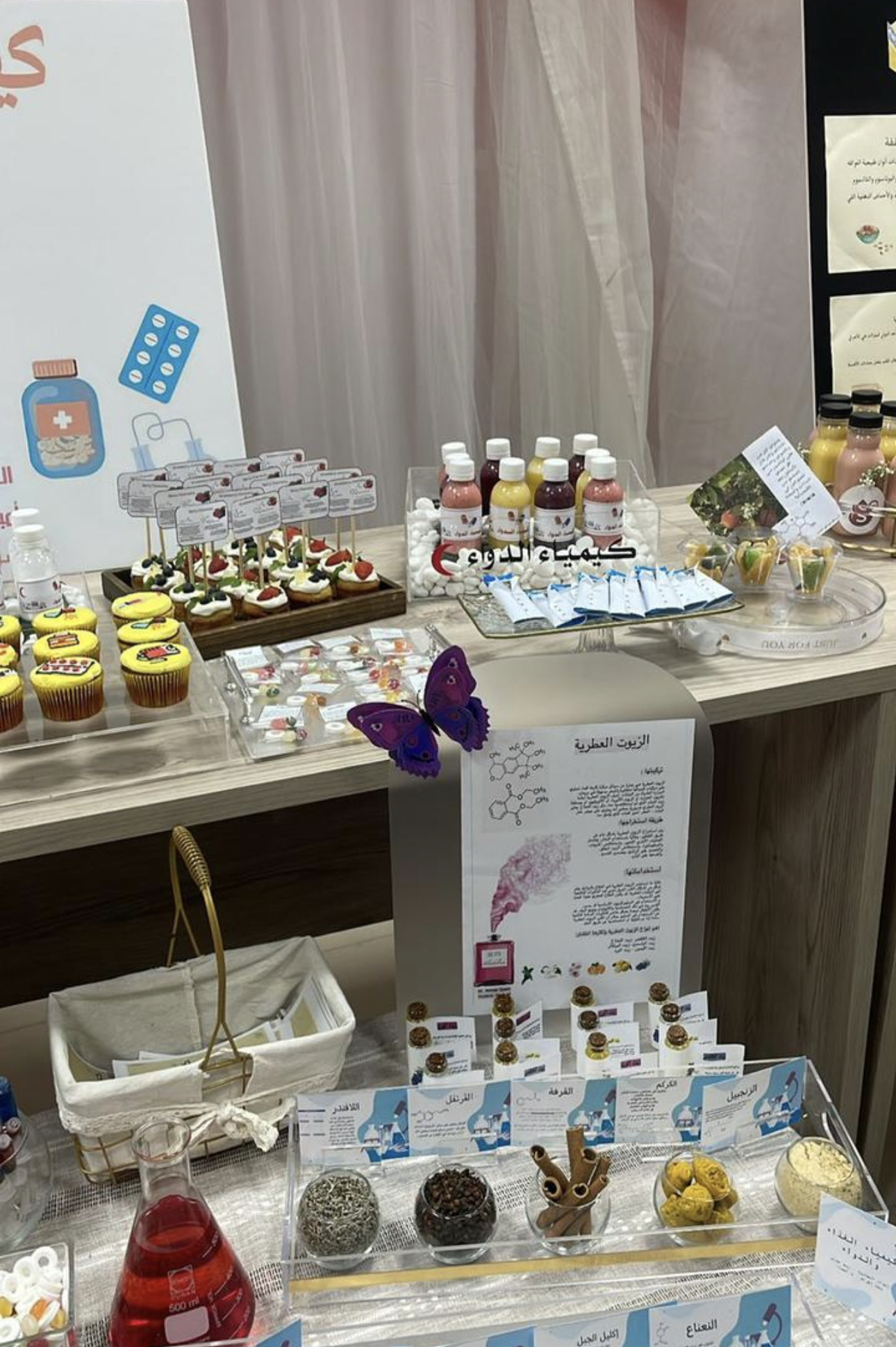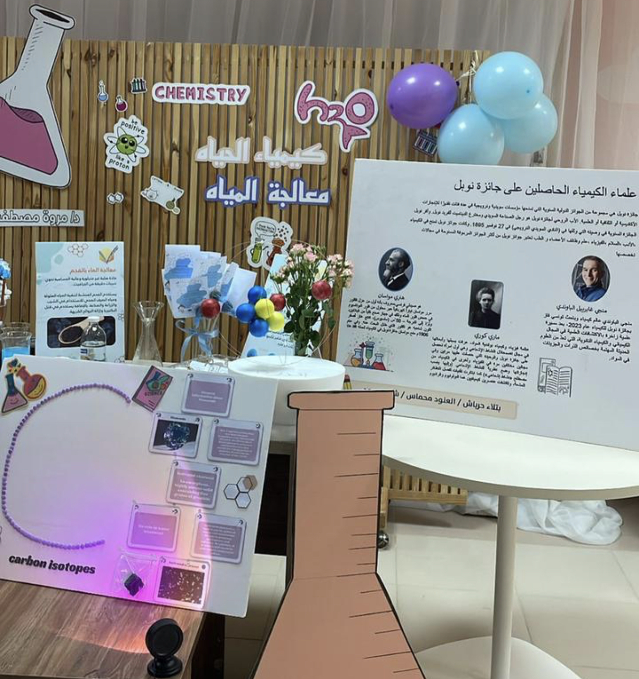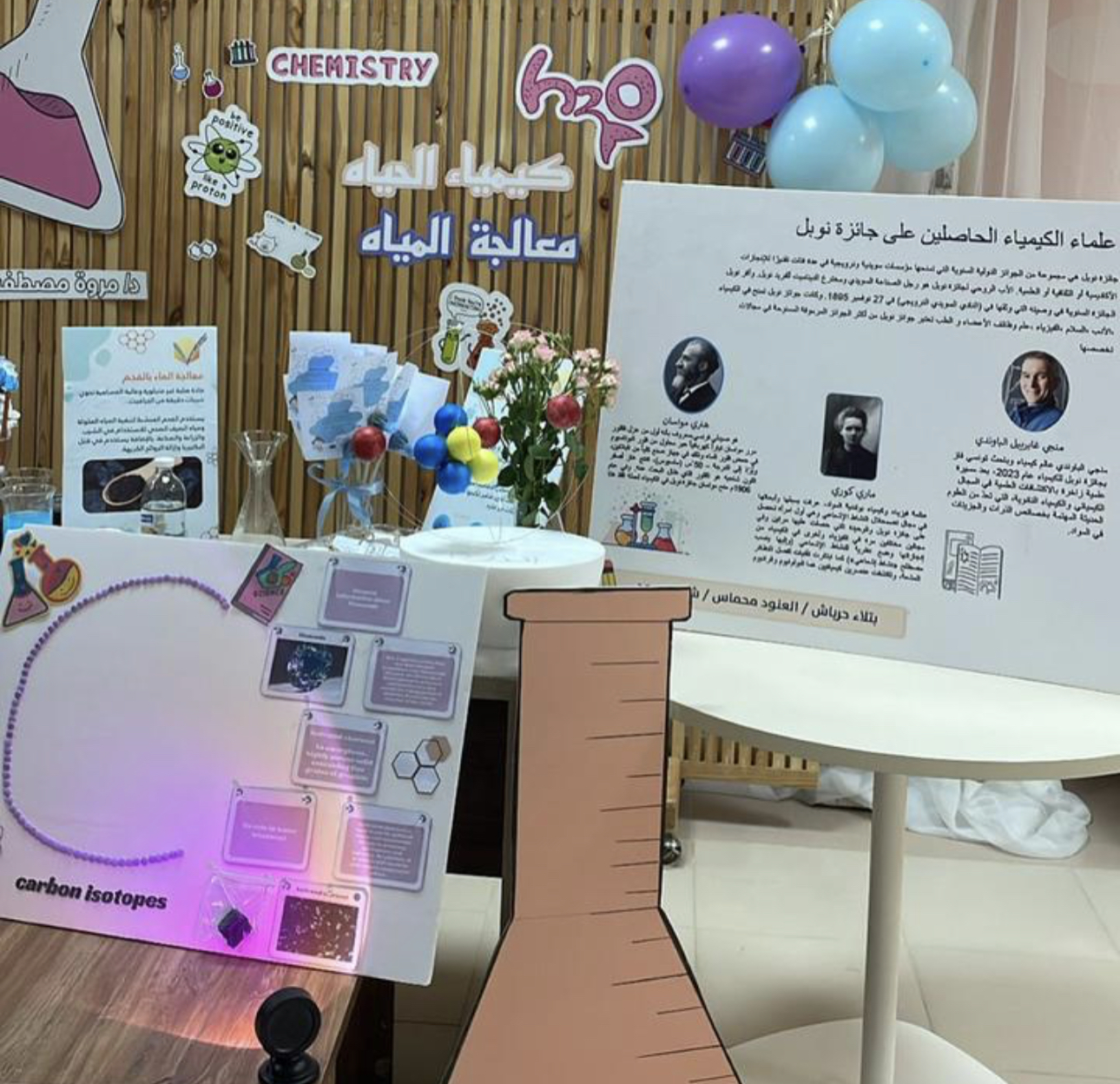 وقدمت الطالبات شرحًا وافيًا بإشراف من عضوات قسم الكيمياء عن كل ركن واستعرضن عددًا من التجارب الكيميائية المفيدة, وقد شهد المعرض حضورًا وتفاعلًا مميزًا من طالبات ومنسوبات الكلية وتشريفًا لوكيلة الكلية د. فارعة الخزاعي