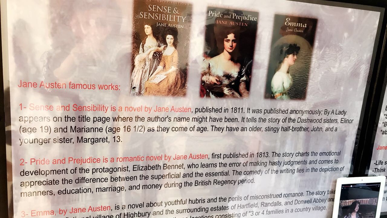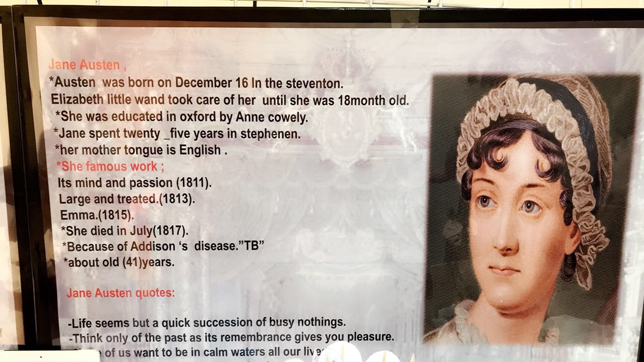 وقد كان للأستاذة نور فاطمة والأستاذة حنان الشهاب دورًا كبيرًا في إعداد وتوجيه الطالبات وحثهم على البحث ,وقد شاركت أيضًا الدكتورة رباب الشيخ في المعرض حيث ضم أركان منها الأدب الإنجليزي البريطاني والأمريكي كذلك استخدام التكنولوجيا الحديثة في التدريس .