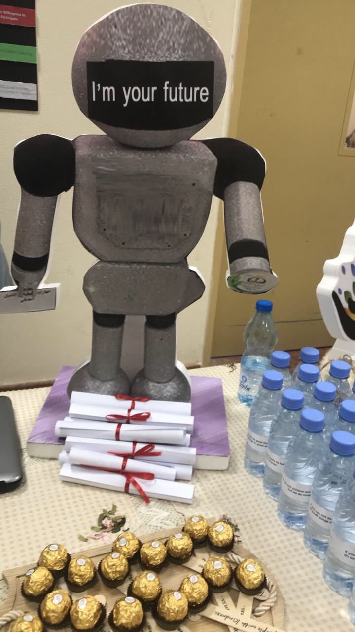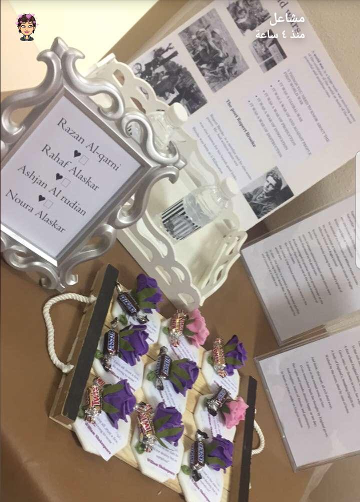 وكان الهدف من هذا المعرض هو إبراز مواهب الطالبات في البحث والإطلاع وأيضًا التحدث والإجابة عن الاستفسارات باللغة الإنجليزية.