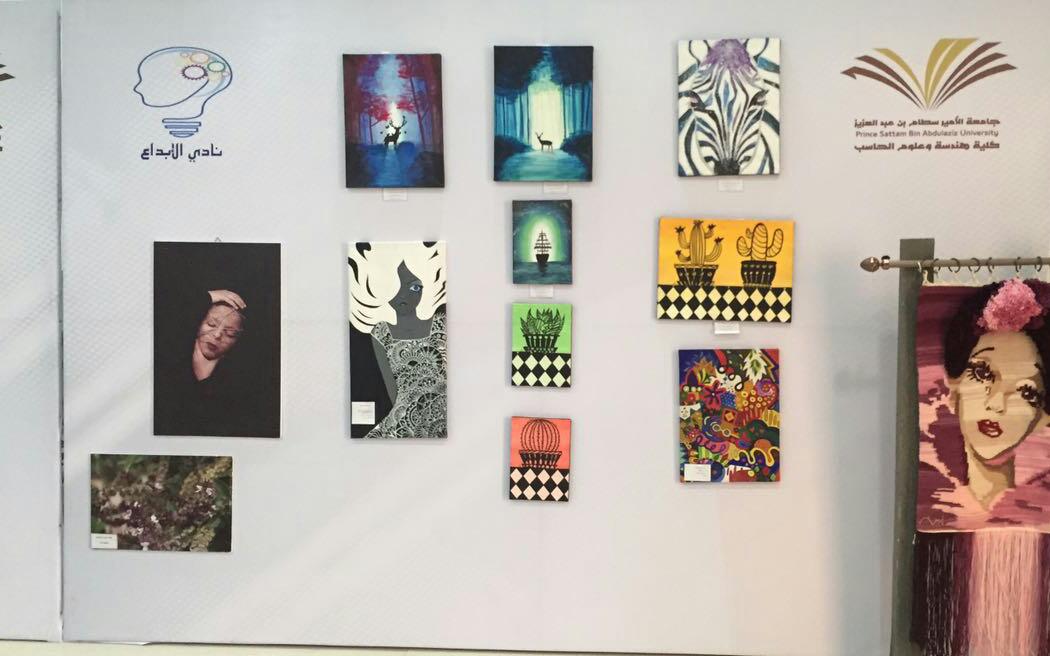 أقام نادي الإبداع تحت إشراف وحدة العمل الطلابي معرض للمبدعات يومي الاثنين والثلاثاء الموافق 6 - 7 / 3 ، حيث اشتمل المعرض على العديد من أعمال الطالبات الفنية من رسم وتصوير وأعمال حرفية في غاية الابداع والجمال ، بالاضافة الى مشاركة نادي رؤية للفنون التشكيلية بالمعرض ، كما اشتمل المعرض على الرسم اللايف وذلك لإضافة لمسه جمالية رفيعة المستوى . واستمع الحضور من طالبات وأعضاء هيئة التدريس وإداريات إلى شرح للأعمال الفنية التشكيلية بمختلف مجالاتها الفنية وإتجاهاتها المتنوعه .