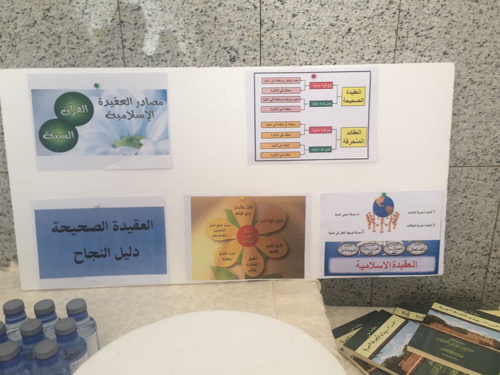 بعد ذلك تم الاستماع لمقاطع في الإعجاز العلمي والدلالة على قدرة الله. واخيرا كان الختام بدعوة الحضور إلى معرض الكتب والذي اشتمل على كتب العقيدة والتفسير الميسر وتوزيعات رمضانيه وقد