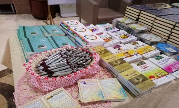 أقام قسم الدراسات الإسلامية بالتعاون مع وحدة خدمة المجتمع بالكلية شراكة مجتمعية مع مكتب الدعوة والإرشاد بالدلم ولمدة ثلاثة أيام ابتدأ من يوم الأحد الموافق:7-8-9/2/1441هـ في البهو الداخلي معرضا يحتوي على كتب دعوية وتعريفية بالإسلام استهدف فيه الجاليات المسلمة والغير مسلمة والتي تعمل لدى موظفات وطالبات الكلية، حيث بلغ عدد زائرات المعرض يوم الأحد: 64 زائرة والاثنين 65 زائرة والثلاثاء 46 زائرة.