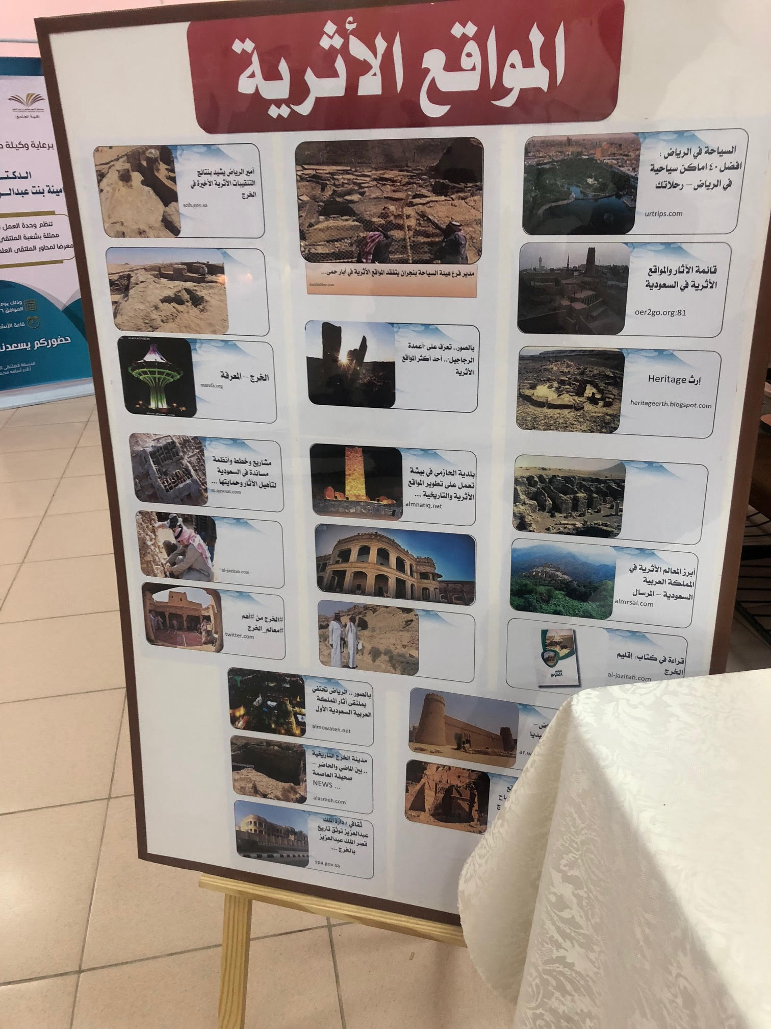 كما يهدف المعرض الى تعريف الطالبات بمحاور الملتقى العلمي التي تتكون من خمس محاور أقيم على نحوها خمس اركان تعرف بكل محور من المحاور.