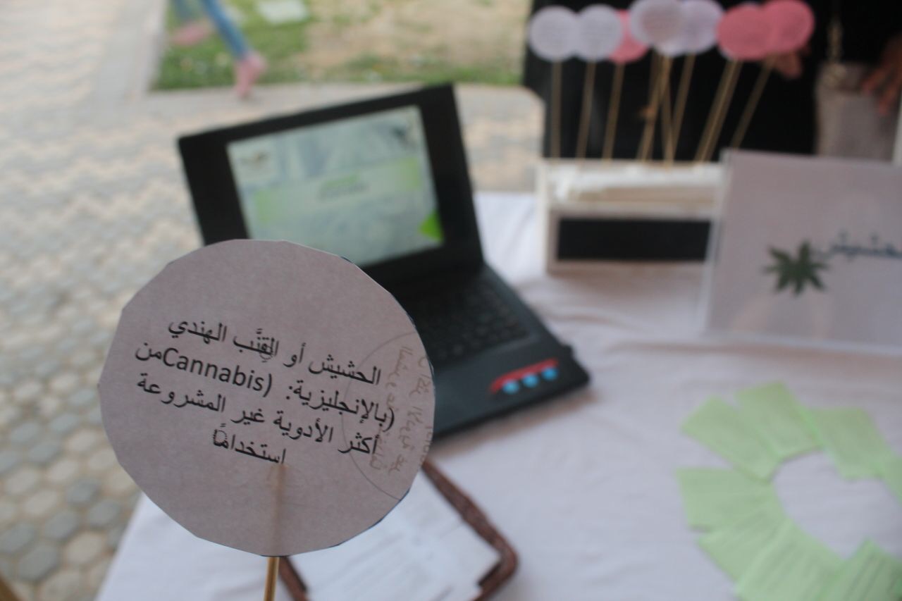 ضمن الأنشطة الطلابية بكلية الصيدلة شطر الطالبات نظم مجموعة من الطالبات معرض توعوي عن مادة الحشيش و ذلك يوم الخميس الموافق 5/3/1439هـ بهدف التعريف بأضرار مادة الحشيش على الحالة الذهنية والنفسية والجسدية للمتعاطي بالإضافة إلى شرح وافي عن طرق ترويجها لزيادة الوعي بأهمية مكافحتها صاحب ذلك توزيع عدد من المنشورات الموضحة لهذه المادة وقد تفاعل الحاضرين بشكل لافت مع الركن عن طريق توجيه الاسئلة والاستفسارات للمنظمات لهذا الركن يذكر أن النشاط عمل كل من الطالبات عبير الزهراني , فاطمة عويص , رحاب العنزي.