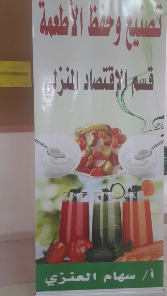 أقامت طالبات مقرر حفظ وتصنيع الغذاء بقسم الاقتصاد المنزلي " معرض لتصنيع المنتجات الغذائية " تحت إشراف أ. سهام العنزي عضو بالقسم يوم: الاثنين الماضي بالمبني الإضافي .