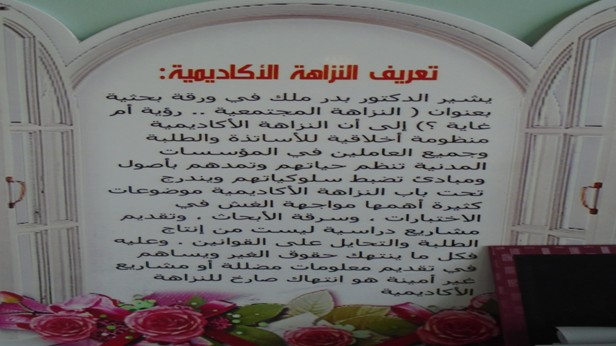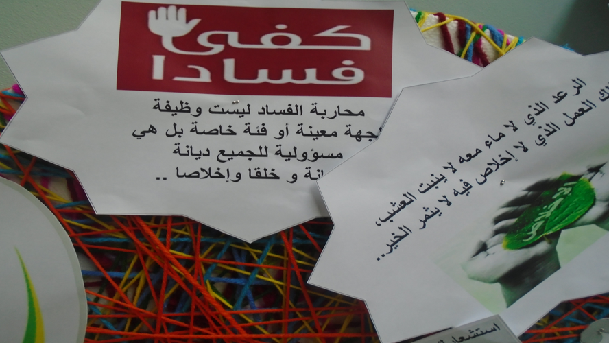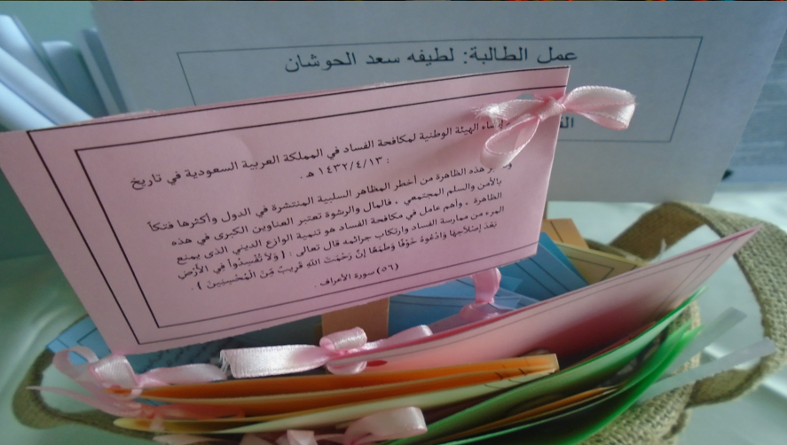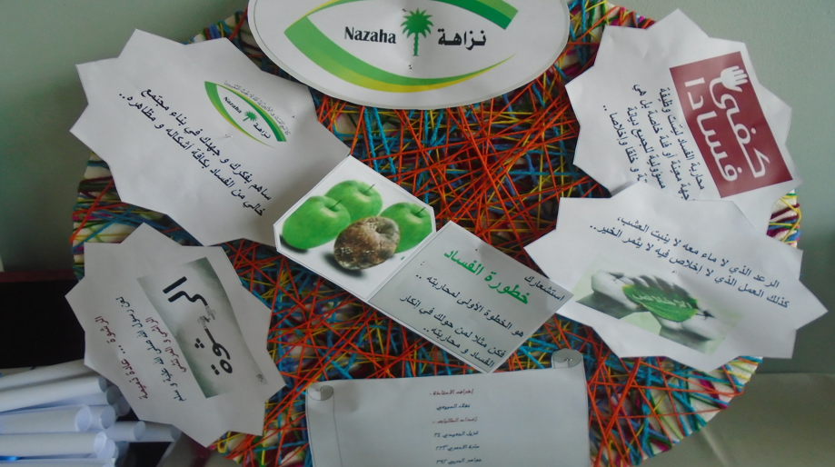 نظمت طالبات قسم الدراسات الإسلامية بمناسبة اليوم العالمي لمكافحة الفساد معرض (النزاهة ومكافحة الفساد) تحت إشراف أ.نفلاء السبيعي مشرفة الأنشطة بالقسم ، يوم الأحد الموافق 19/3/1438هـ ، الساعة التاسعة صباحاً في البهو الداخلي بالكلية.
