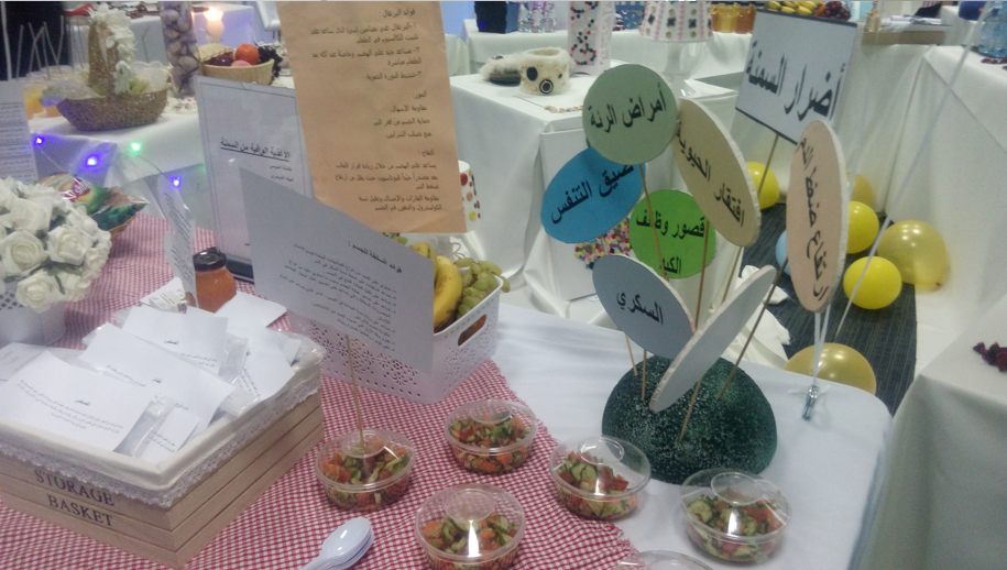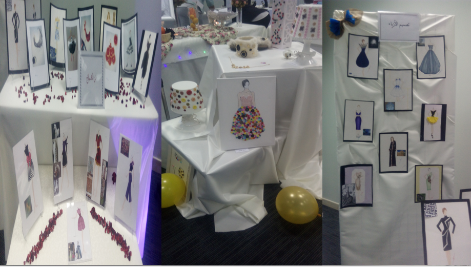 حيث احتوى المعرض على عدة أركان متنوعة ، اشتملت على تصميم الأزياء و فنون الكولاج و الكروشيه و التطريز و منتجات المفروشات و الملابس الصباحية و المنزلية و ملابس الأطفال كما شمل المعرض ركن خاص لمنتجات الحلي و المجوهرات و الجلود إضافة إلى معروضات الطالبات للأغذية المخصصة للمرأة الحامل و للمسنين و للأغذية التي تحسن مناعة الجسم ، و قد لاقت منتجات الطالبات استحسانا كبيرا من زوار المعرض ،والجدير بالذكر أن المعرض سوف يستقبل زوار الجامعة يومي الأربعاء والخميس ، ومفتوح للطالبات الكلية اعتباراً من يوم الأحد الموافق 20/6 حتى الثلاثاء الموافق 22/6/1438هـ .