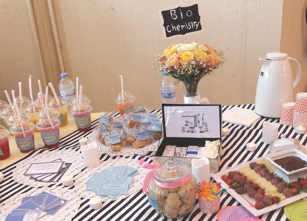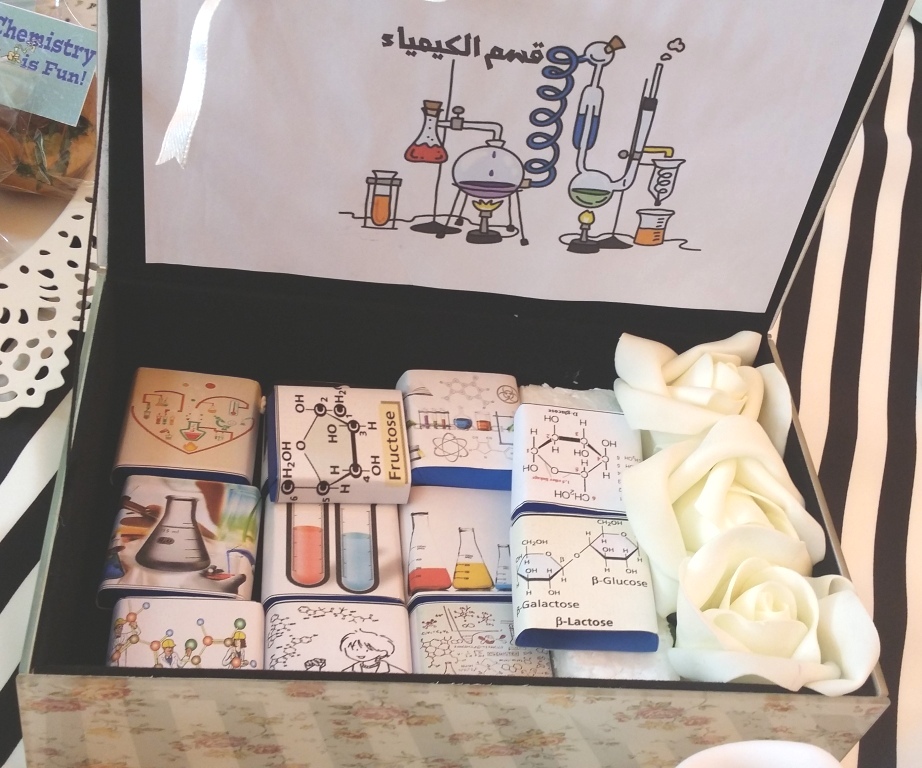 أقامت طالبات قسم الكيمياء في كلية العلوم والدراسات الإنسانية بالخرج بإشراف الدكتورة فاطمه الشرباصي والأستاذة أنوار الورثان بعمل معرض تعرفي مصغر لقسم الكيمياء في بهو مبنى(أ).