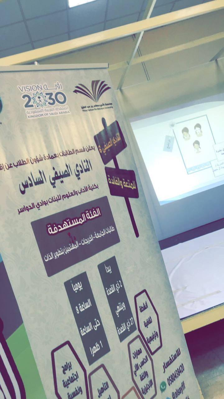 تنطلق اليوم الأحد ١٤٣٩/١١/٢هـ الموافق ٢٠١٨/٧/١٥م، فعاليات النادي الصيفي للطالبات بنسخته السادسة في فروع الجامعة الستة: الخرج والدلم والحوطة والأفلاج والسليل ووادي الدواسر.
