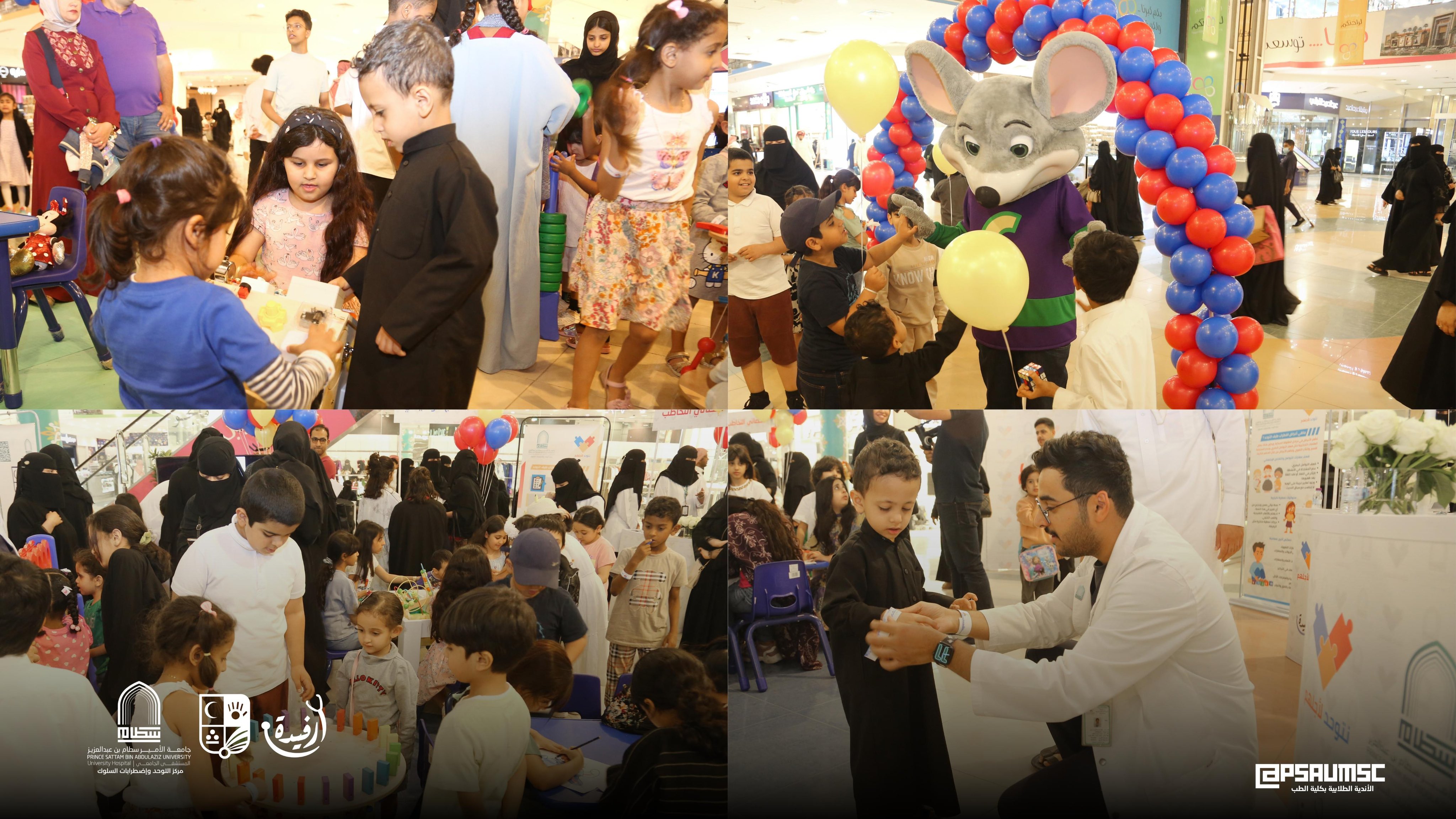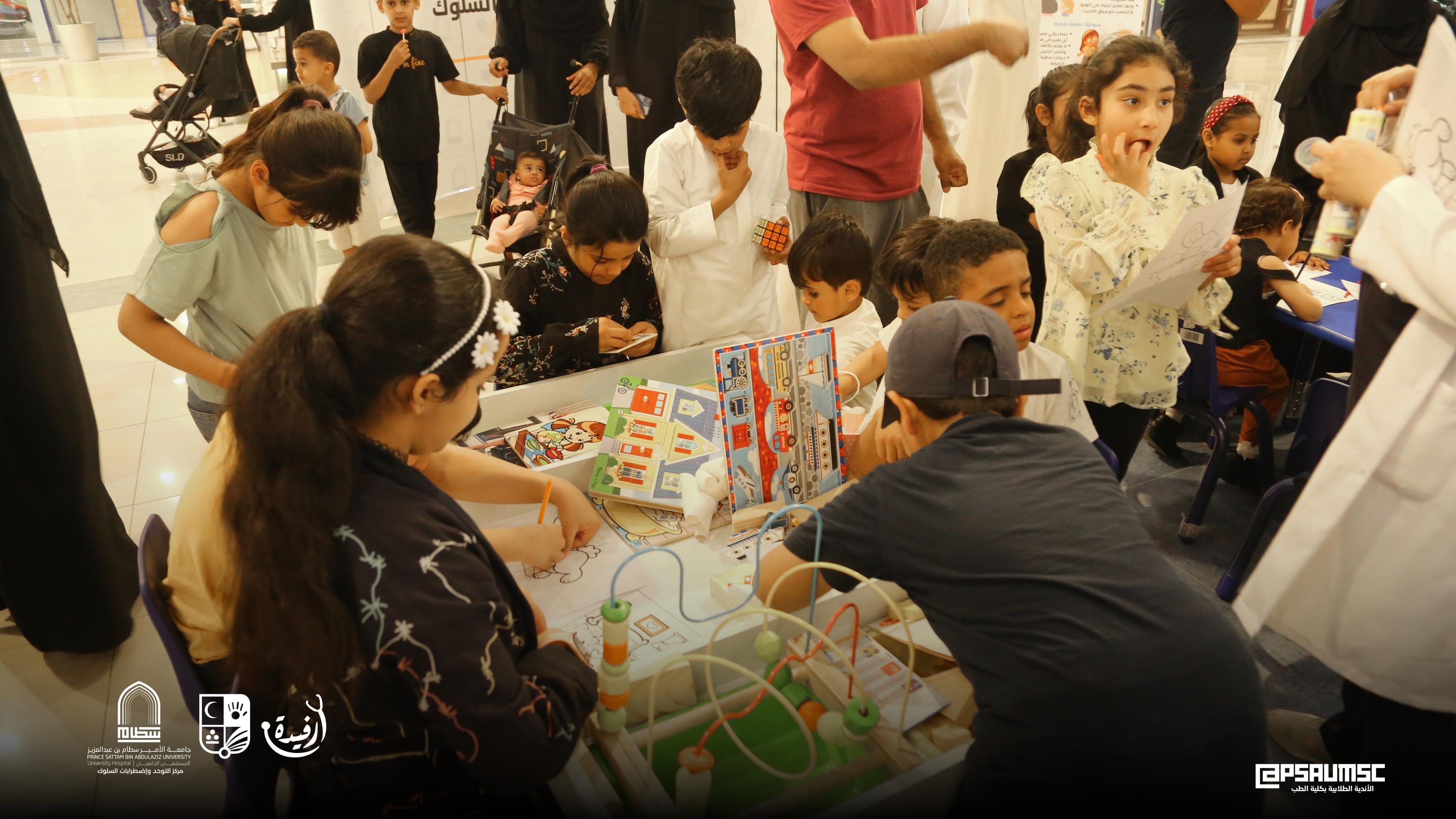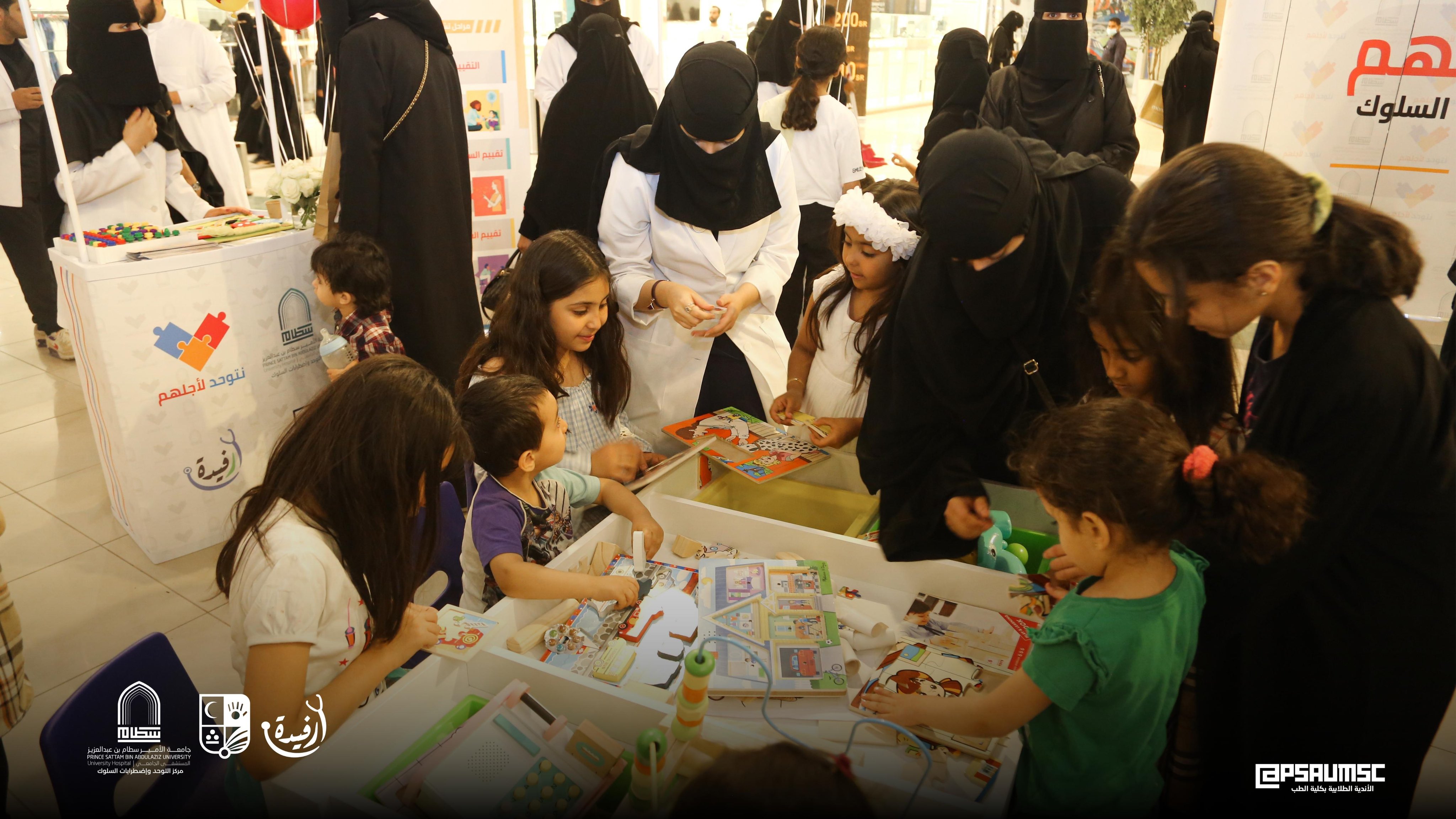 تزامناً مع اليوم العالمي للتوحد نظم مركز التوحد لاضطرابات السلوك بالمستشفى الجامعي بالتعاون مع الأندية الطلابية بكلية الطب حملة تفاعلية تثقيفية تحت شعار (نتوحد لأجلهم) ، وذلك يوم الخميس الموافق 6/4/2023م والتي أقيمت في الحديثي مول بمحافظة الخرج .