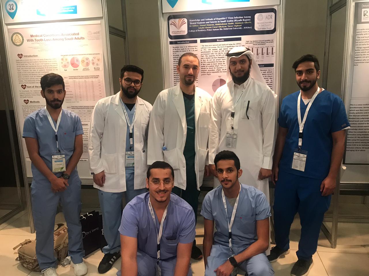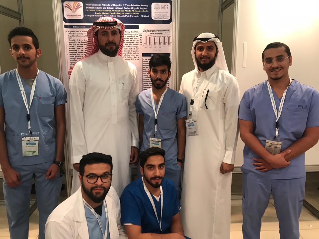 1- (مدى معرفة طلاب وطالبات طب الأسنان وأطباء الامتياز في منطقة الرياض عن التهاب الكبد الوبائي ج) قدمها كل من الطلاب على الدباس وعبد العزيز الحربي وخالد العاصمي وأحمد العمران وعبد الرحمن العتيبي تحت إشراف المعيد فيصل الهديان و د. وليد سمير و د. ناصر القحطاني.