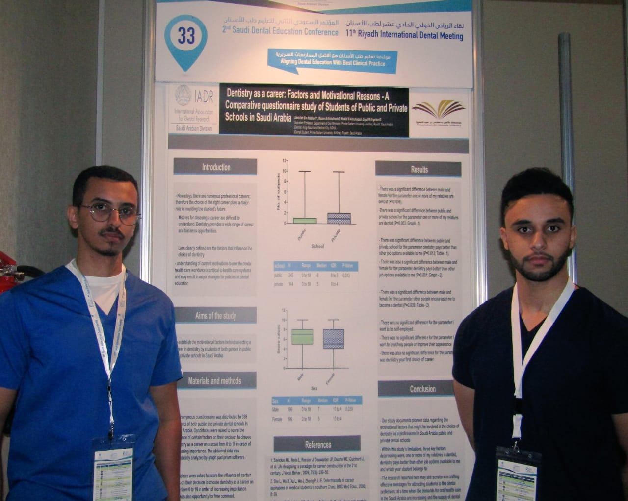 حيث شارك ممثل جامعة الأمير سطام كلية طب الأسنان بخمسة ملصقات علمية بحثية مميزة وهي على النحو التالي: