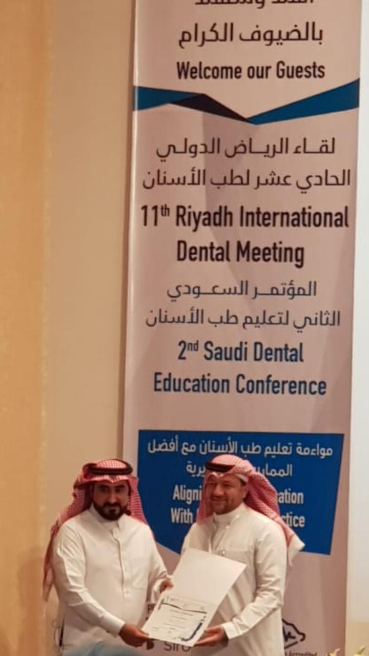 حصل خلالها الدكتور سلطان المالكي وكيل الكلية للجودة والتطوير على المركز الثاني في منافسة الملصقات البحثية التي أقامتها جمعية تعليم طب الأسنان وتم تكريمه من قبل اللجنة المنظمة.