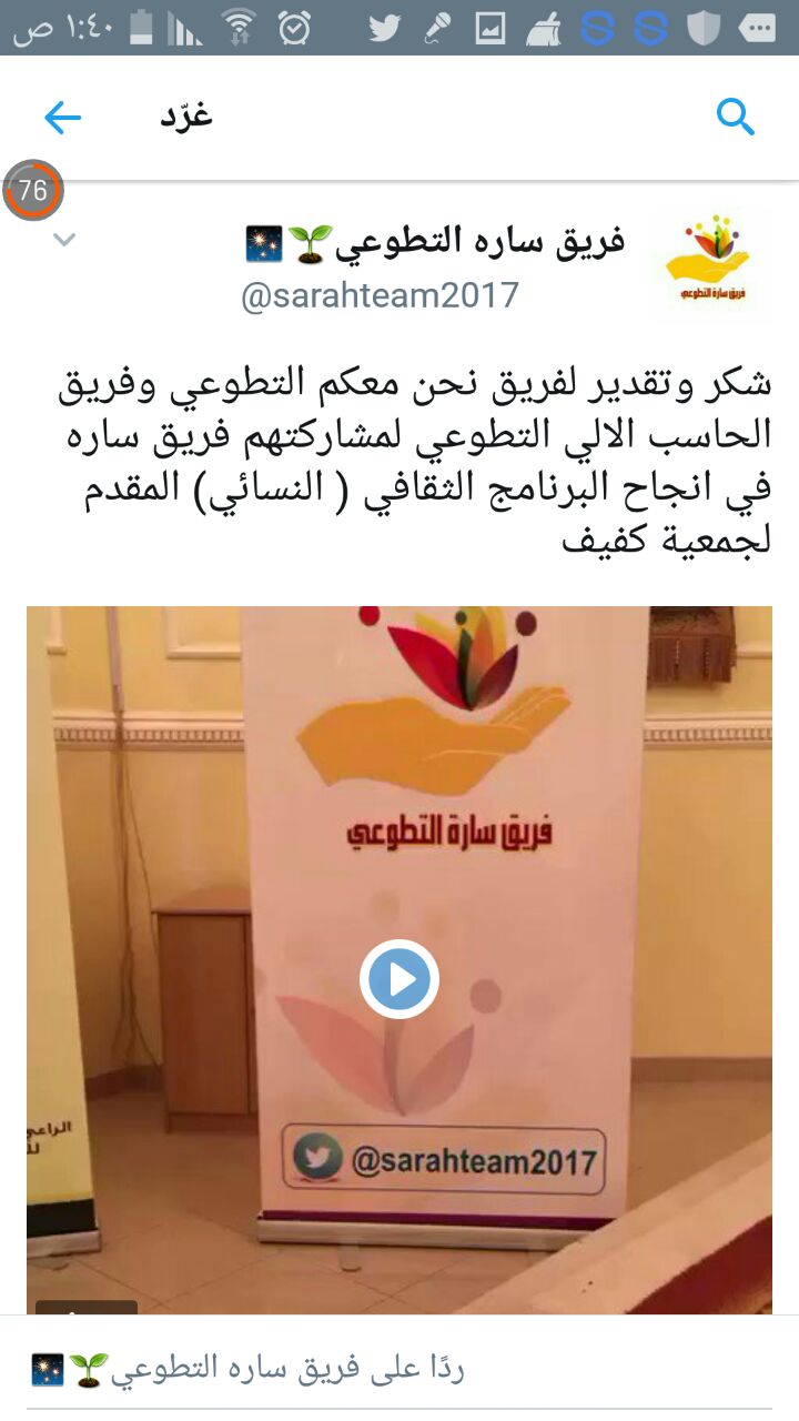 قام المجلس الطلابي ومجموعة من الطالبات بكلية هندسة وعلوم الحاسب بالتعاون مع فريق سارة التطوعي بالرياض في المشاركة بالبرنامج الثقافي النسائي لجمعية كفيف والمقام بمزرعة الراجحي بالدرعية وذلك يوم الخميس الموافق ٢٦-٥-١٤٣٨ حيث شاركن الطالبات بتنظيم الحفل وتقديم بعض المسابقات والألعاب للكفيفات ،ولقد شهد هذا البرنامج حضور فئة كبيرة من الكفيفات تقريبا ما يقارب 200 كفيفة بمختلف الفئات العمرية وكان لهذا الحفل أثرًا كبيراً على الحضور وعلى من حضرن معهن ،نسال الله أن يعينهم ويجعلنا مفاتيح للخير مغاليق للشر.