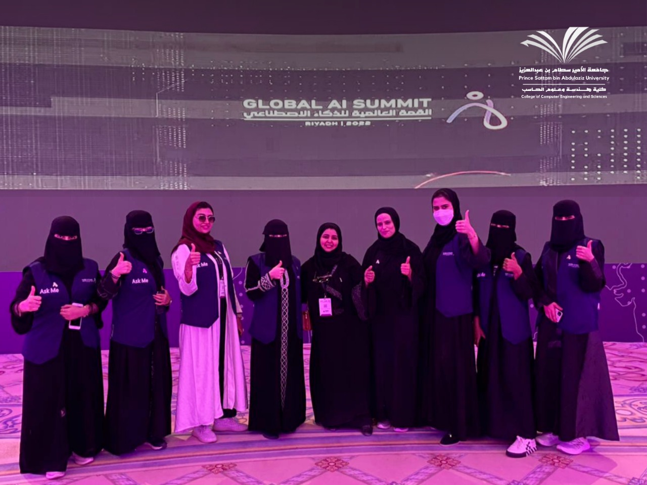 تشرفت كليه هندسه وعلوم الحاسب بجامعة الامير سطام بن عبدالعزيز بمشاركه مجموعة من طالبات الكلية بالتنظيم في القمة العالمية للذكاء الاصطناعي Global Al summit والمنظمة من الهيئة السعودية للبيانات والذكاء الاصطناعي سدايا خلال الفتره من 13 إلى 15 سبتمبر 2022 م وكان هذه اراءهن خلال فتره مشاركتهن:-