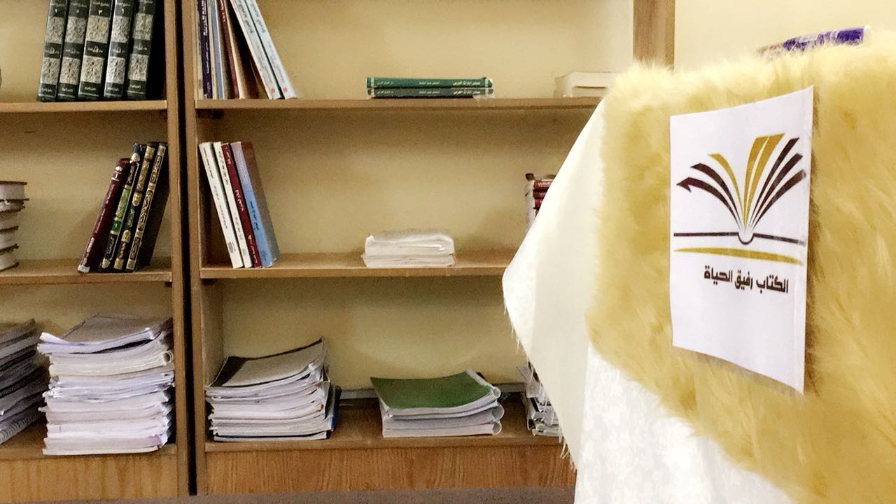 بتوفير مكتبة لذلك وكان بإشراف منسقة المجالس الطلابية الأستاذة / فاطمة العثمان وعضوات المشروع طالبات قسم اللغة العربية اللآتي توشحن بطاقات تعريفية لسهولة التواصل معهن