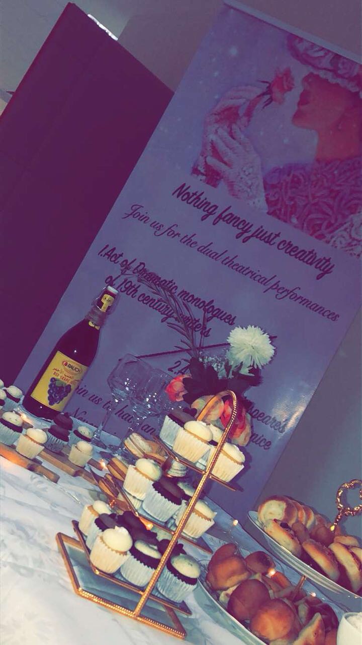 وقد كان هذا النشاط الفني من تنظيم وإعداد الأستاذة نور فاطمة حيث قامت بتحفيز الطالبات وساعدتهم على إخراج مواهبهم الفنية ,وتضمن العرض تمثيل لمشهد المحكمة الشهير المأخوذ من مسرحية الكاتب ويليام شيكسبير وقد أدوا الطالبات بالمسرح هذا المشهد الذي يحكي عن قوة المرأة وذكائها , وأيضًا كان هناك مشاهد درامية منفردة تم تمثيلها من قبل الطالبات تقمصوا شخصيات الروايات , فقد تنكر الجميع بأزياء تتناسب مع الفكرة العامة للمسرحية.