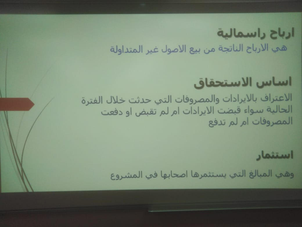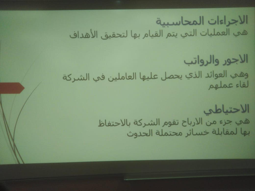 أقامت وحدة الخريجين ممثلة بشعبة التدريب المهني يوم الثلاثاء الموافق 8-7-1441هـ دورة تدريبية تحت عنوان " مصطلحات محاسبية" من تقديم الدكتور/ شيراز محمد عثمان مساعدة المشرف على قسم إدارة الأعمال بالكلية حيث اشتملت الدورة على التعريف بأهم المصطلحات المحاسبية وكيفية إعداد الميزانية ومعرفه حساب الربح والخسارة بالنسبة للمؤسسات والاستثمارات والرواتب والأجور والأصول المتداولة وغيرها كما تطرقت الى الحديث عن الاستثمار طويل الأجل والاستثمار قصير الأجل وأنواع الأصول كالأصول الثابتة والأصول الغير ملموسة والأصول المتداولة؛ وتطرقت كذلك الى العديد من المحاور المتعلقة بالمحاسبة.