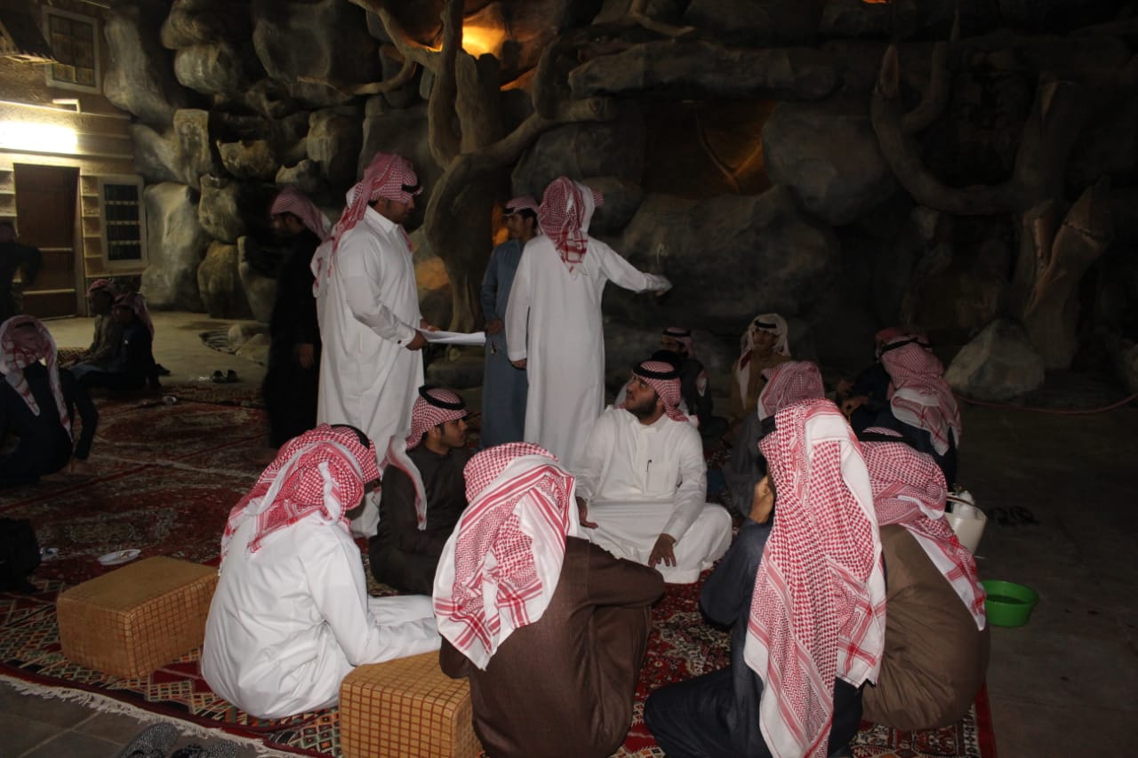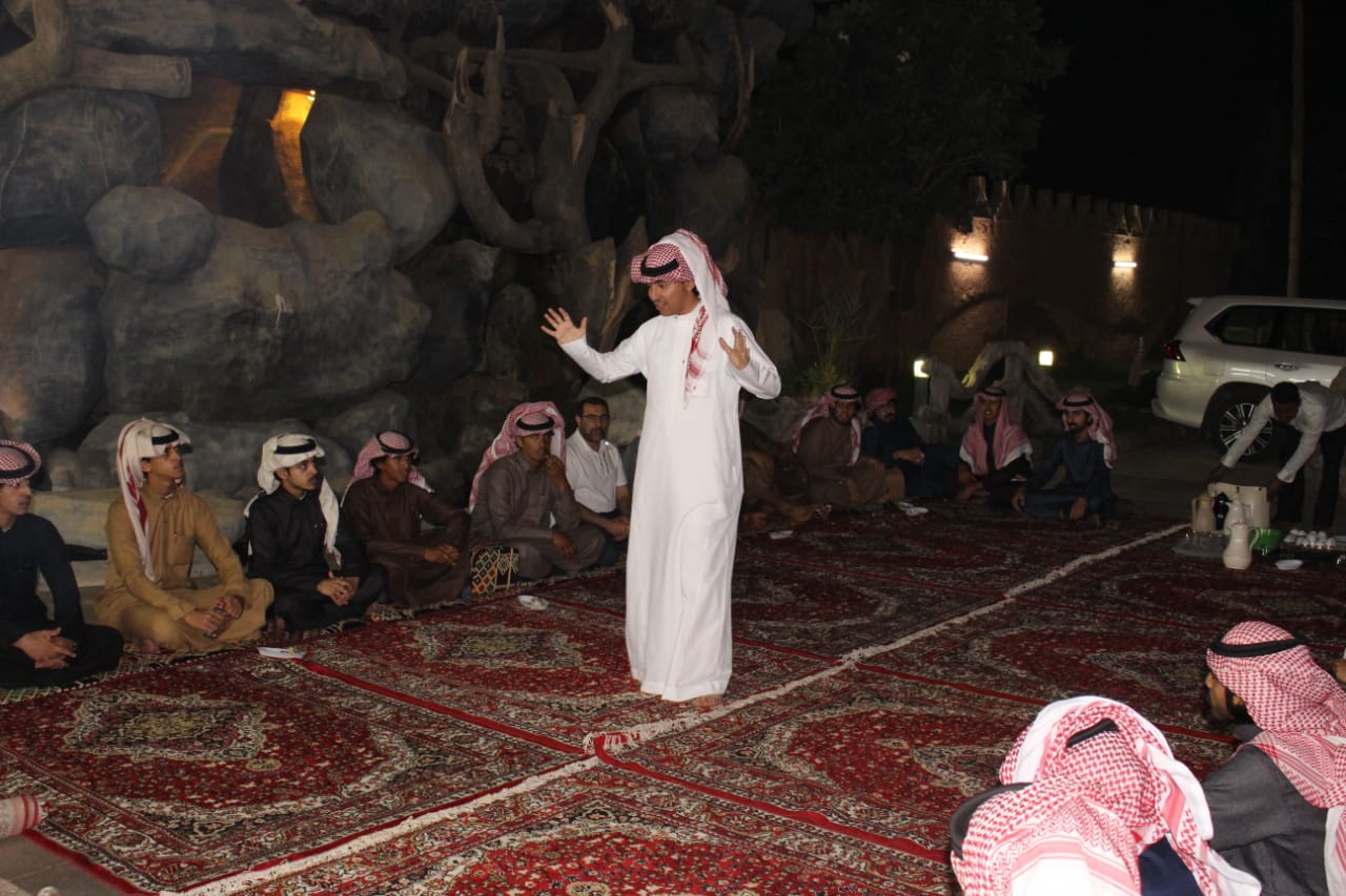 وشاهد طلاب أماسي شبابية 2 خلال الجولة في المتحف انواع من التراث الشعبي ومجسمات لأنماط الحياة بوسط الجزيرة العربية عبر القرون حتى العهد السعودي الزاهر، عرضت بمجموعة من الغرف تمثل رواقاً يحيط بفناء تم استخدامه بطريقة احترافية لعمل العروض التراثية الحية على منصة للزوار وبنيت بأركان المبنى أبراج بارتفاع 10م.