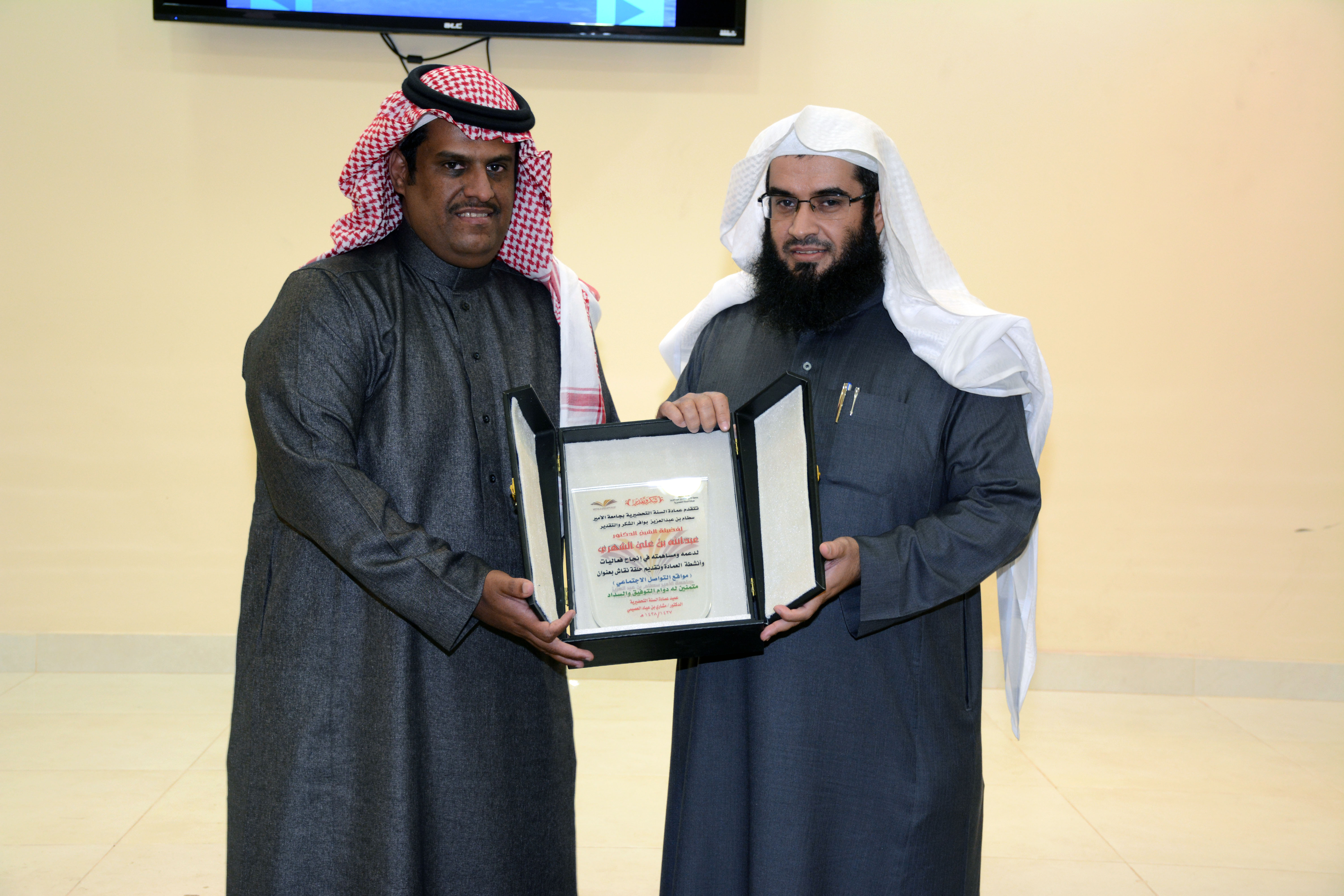 وفي ختام اللقاء تقدم عميد عمادة السنة التحضيرية الدكتور مشاري بن عياد العصيمي بالشكر للدكتور عبدالله الشهري على ما قدم واصلا شكره للطلاب على حضورهم وتفاعلهم، وقدم درعًا تذكاريًّا باسم العمادة لضيف اللقاء.