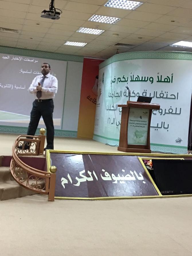 بتوجيهات من عميد كلية الأداب والعلوم بوادي الدواسر د. سفر بن بخيت المدرع وضمن الأنشطة العلمية التي دأب قسم الرياضيات بالكلية على تنظيمها ، قدم الدكتور هاني الجرادات العضو بقسم الرياضيات حلقة نقاش علمية بعنوان "مواصفات الاختبار الجيد" . وقد تمحورت الحلقة حول محورين ، المحور الأول حول صفات الاختبار الجديد و المحور الثاني كان بخصوص خطوات إعداد اختبار جيد.في المحور الأول ذكر الجرادات أن للاختبار الجيد صفات أساسية و صفات ثانوية يجب أن تراعى لأهمية هذه الصفات في نوعية الاختبار وفي المحور الثاني قدم شرح تفصيلي للخطوات الست و التي يتطلبها عمل الاختبار الجيد مع أمثلة توضيحية متنوعة من مقررات الرياضيات المختلفة. وفي نهاية الحلقة فُتح باب النقاش والمداخلات التي أثرى فيها الزملاء من أعضاء هيئة التدريس ومساعديهم جو التفاعل وتبادل الأفكار والتجارب المعرفية، وقد أثنى رئيس القسم د. محب أبو زيد وجميع الحضور على هذه المحاضرة القيمة ومدى الفائدة التي اكتسبوها منها والتي يتوقعوا أنها ستسهم في عملية تطويرالاختبارات وتنميتها.