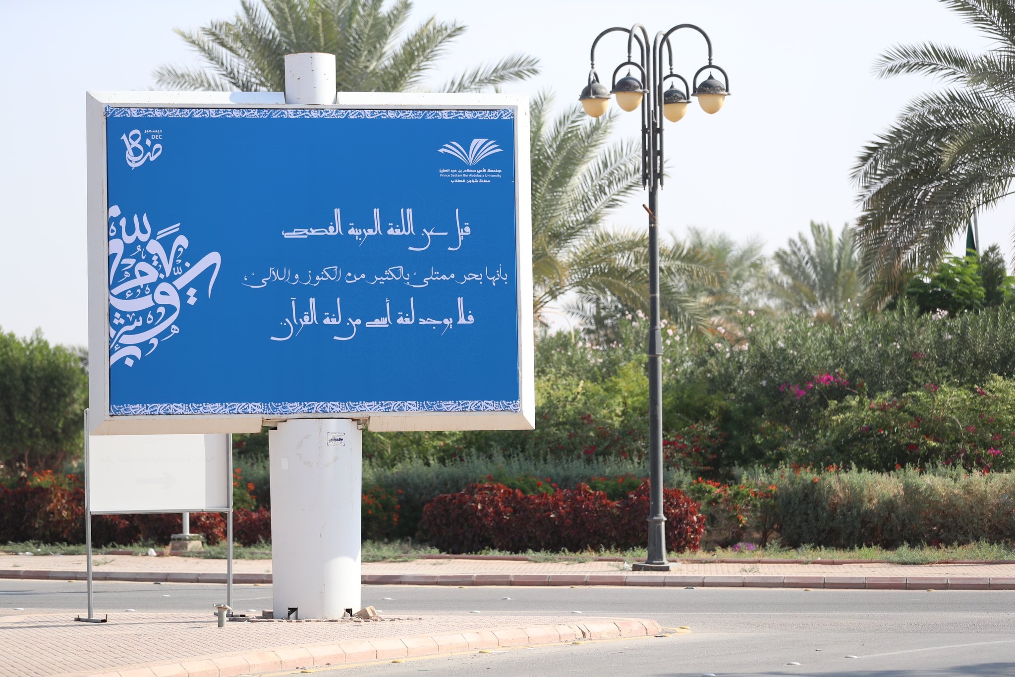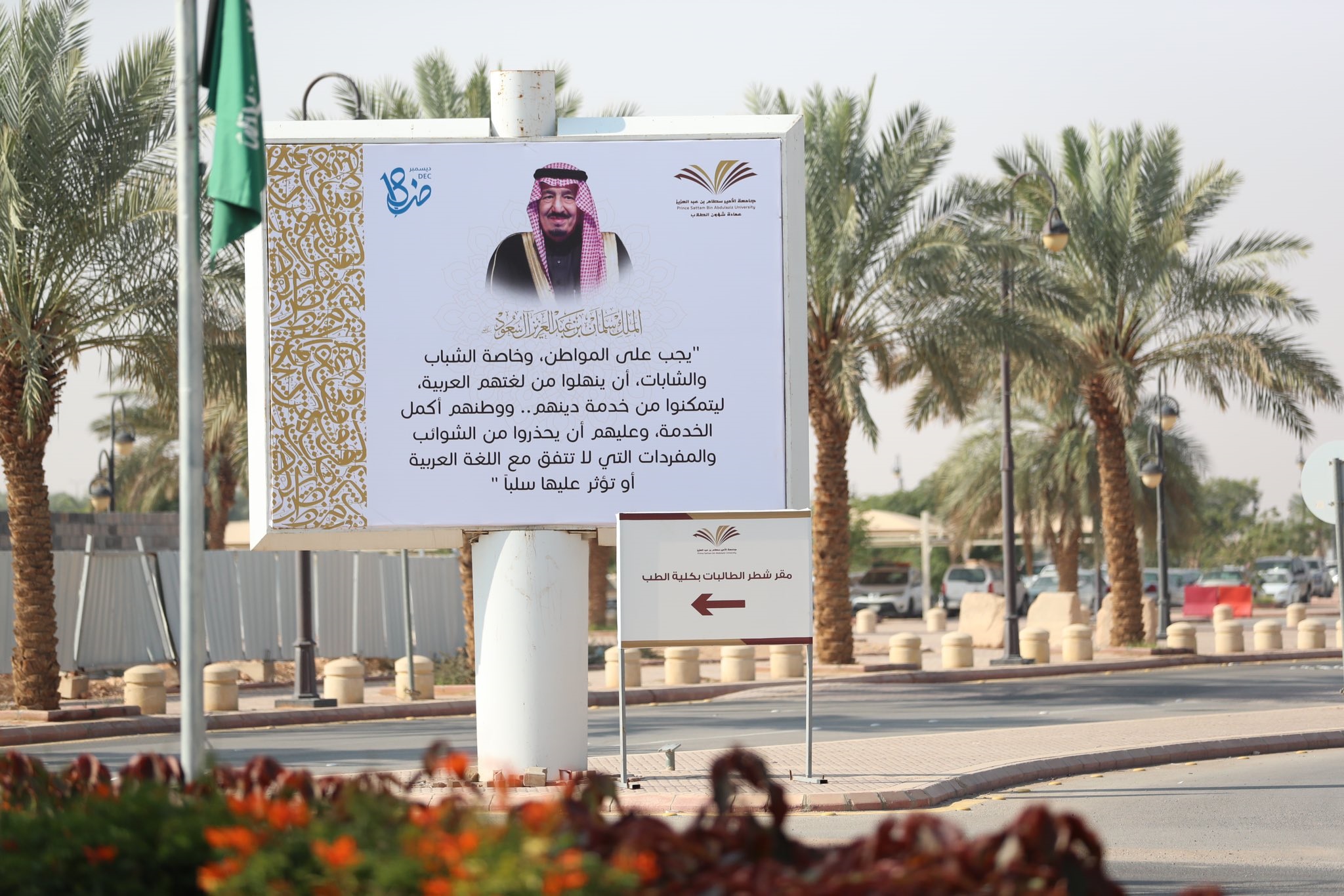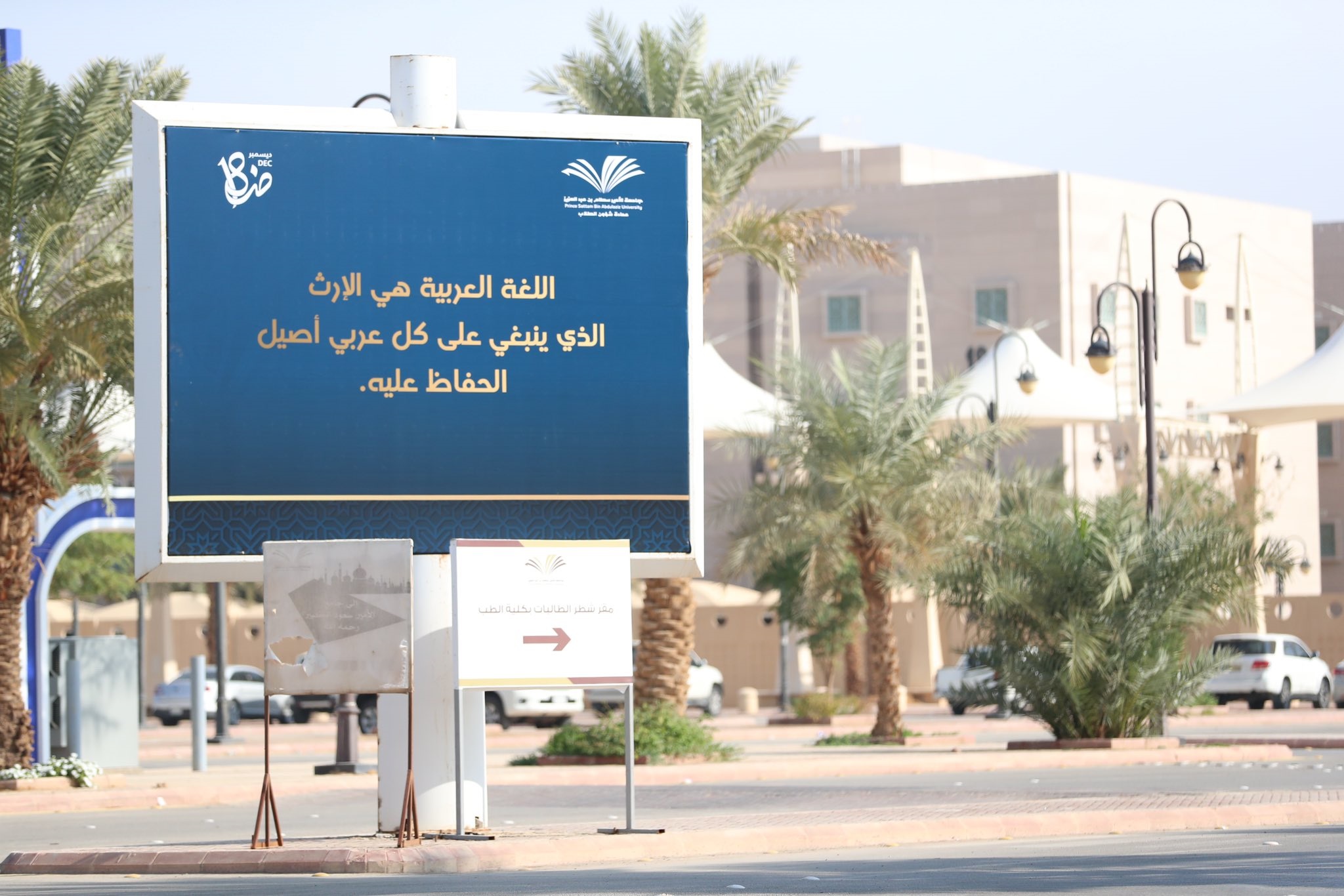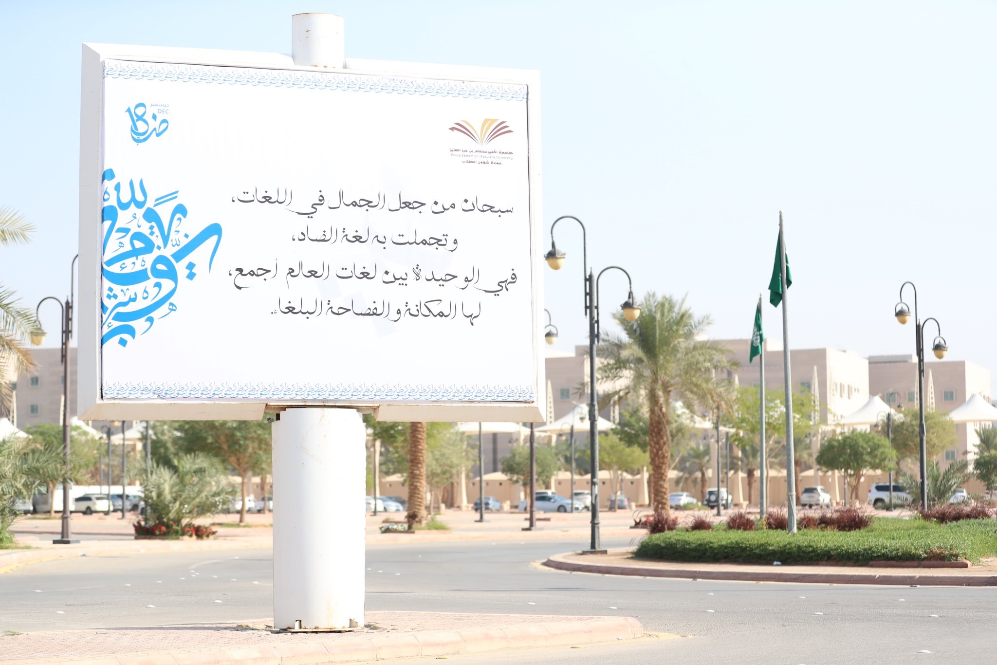 تزينت ميادين الحرم الجامعي الرئيس لجامعة الأمير سطام بن عبدالعزيز بمدينة الخرج بعدد كبير من اللوحات الخاصة التي تبرز جمال اللغة العربية وذلك بالتزامن مع اليوم العالمي للغة العربية والذي يصادف يوم 18 من شهر ديسمبر في كل عام ، إبرازاً لمكانة اللغة العربية وتمييزاً لعمقها التاريخي وتعزيزاً لقيمتها العالية في تاريخ الحضارة البشرية والثقافة الإنسانية. يشار إلى أن الجامعة وفق رؤيتها ورسالتها تسعى على تعزيز أهمية الاحتفاء بهذه المناسبة بهدف إبراز القيمة العالية للغة العربية كتابةً وتحدثًا وتجسيداً لمكانتها كونها لغة القرآن الكريم ومن أقدم اللغات ، إضافة إلى إبراز الدور الفعال للجامعة في مد جسور التواصل اللغوي والثقافي والعلمي لأن تكون منارة أكاديمية تخدم المجتمع بكافة فئاته وتشارك بفعالية في كافة المناسبات.