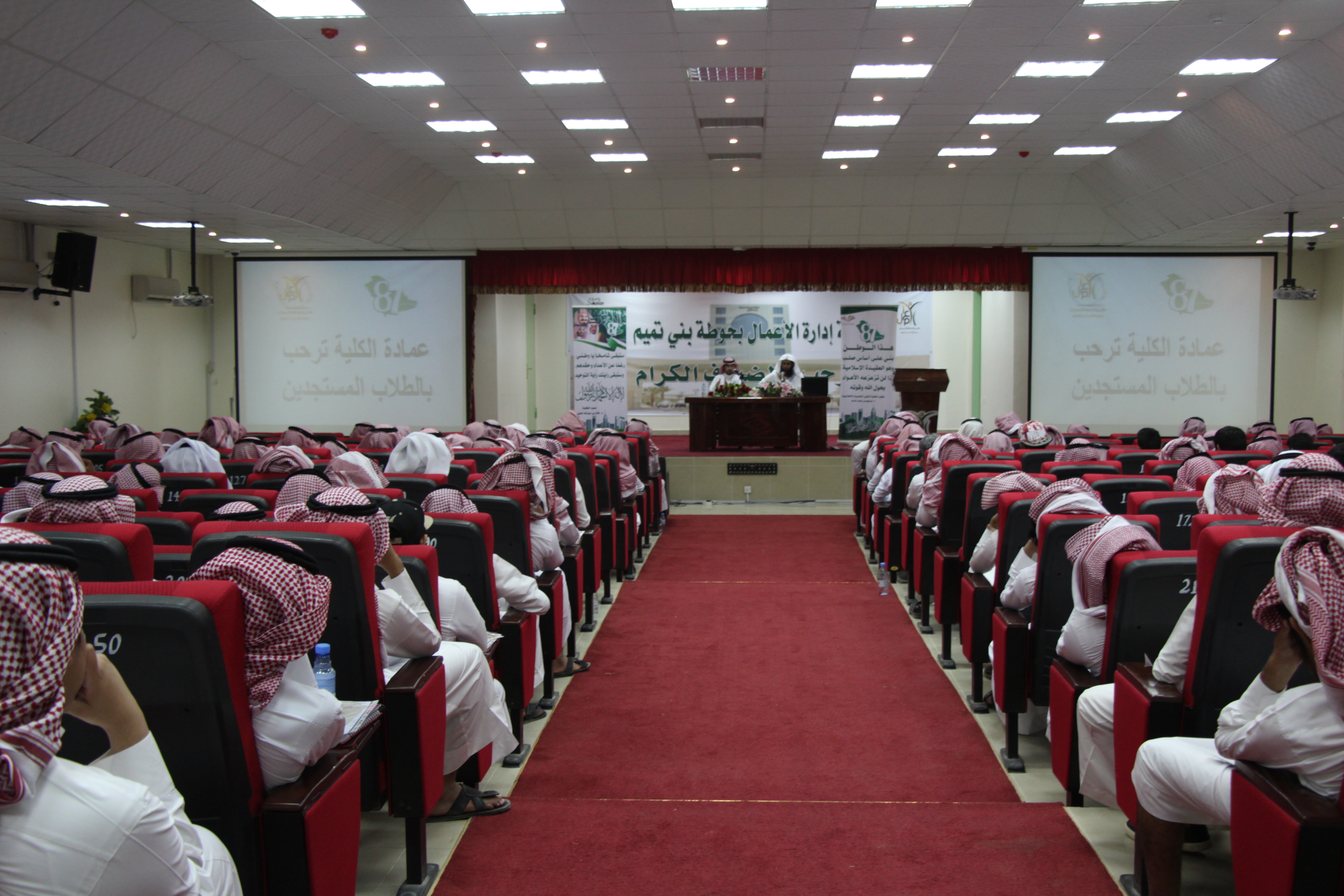 التقى عميد كلية إدارة الأعمال في حوطة بني تميم د. خالد بن عبدالله العتيبي بحضور وكيل الكلية للشؤون التعليمية والأكاديمية د. إبراهيم بن محمد الداود مع الطلاب المستجدين، وذلك في يوم الأربعاء ١٤٣٩/١/٧هـ.