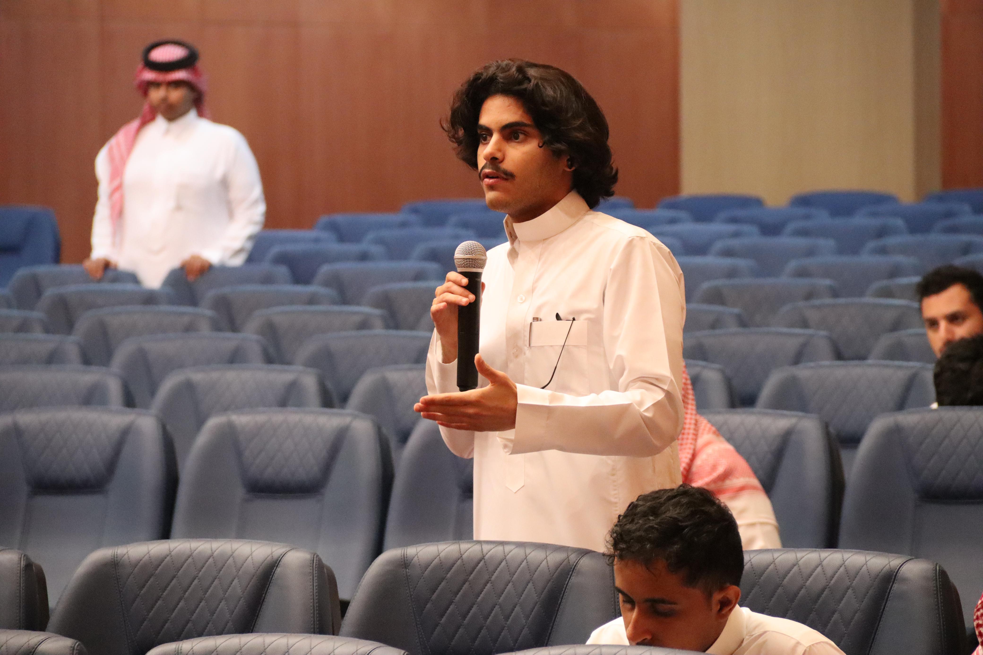 حضر اللقاء وكيل الكلية للشئون التعليمية والأكاديمية سعادة الدكتور نيف الودعاني، ووكيل الكلية للتطويروالجودة سعادة الدكتورمحفوظ الدوسري، وعدد من أعضاء هيئة التدريس بالكلية وطلاب الكلية.