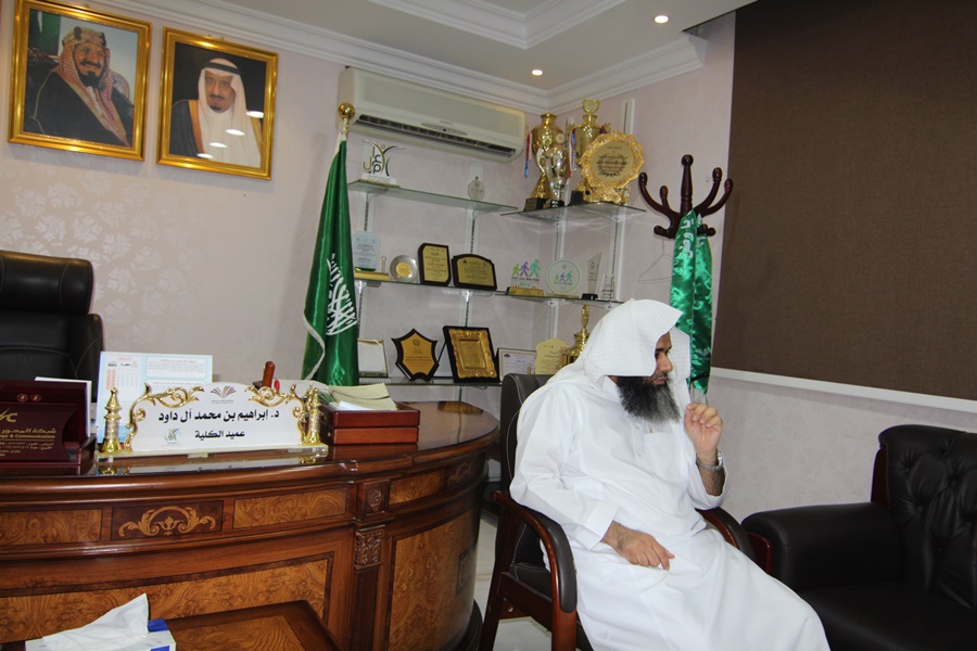 التقى عميد كلية إدارة الأعمال في حوطة بني تميم د. إبراهيم بن محمد الداود في مكتبه بأعضاء المجلس الطلابي في الكلية، يومَ الأربعاء ١٤٤١/٢/٢٤هـ.