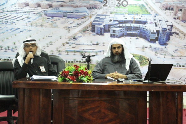 وقد أوضح د. إبراهيم الداود رسالة الكلية ورؤيتها وأهدافها، مبيِّنًا من خلال عرض مرئي أبرز الأنظمة الأكاديمية في الكلية وأقسامها العلمية، كما أشار إلى الخطة الدراسية للأقسام.